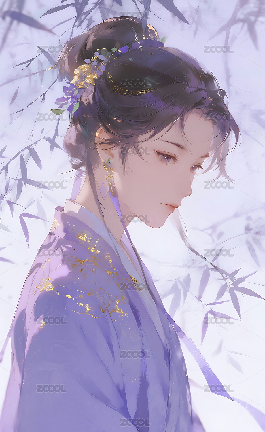 古风,美貌,女子,半身像,单色,背景,壁纸,中国风,国潮