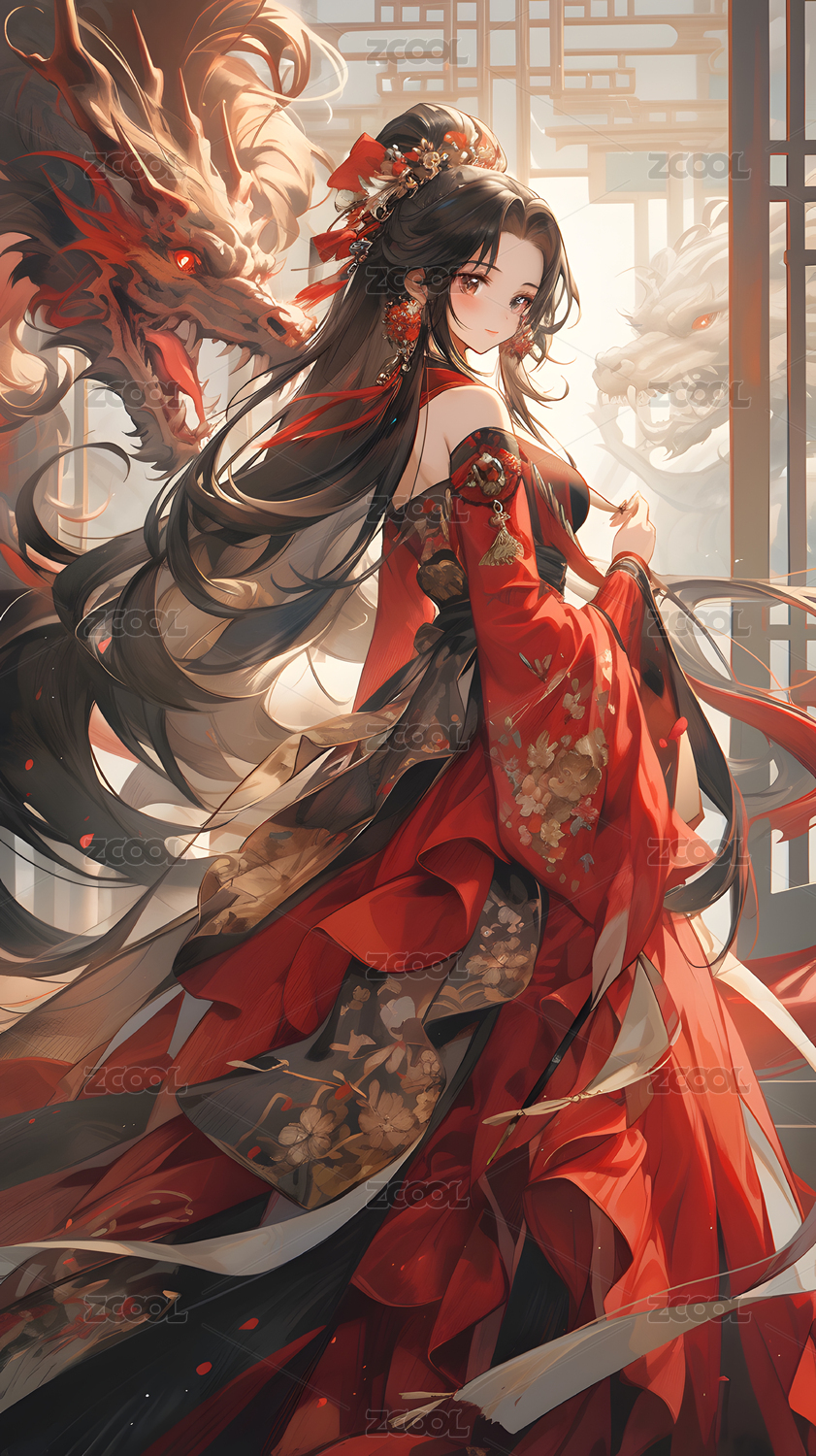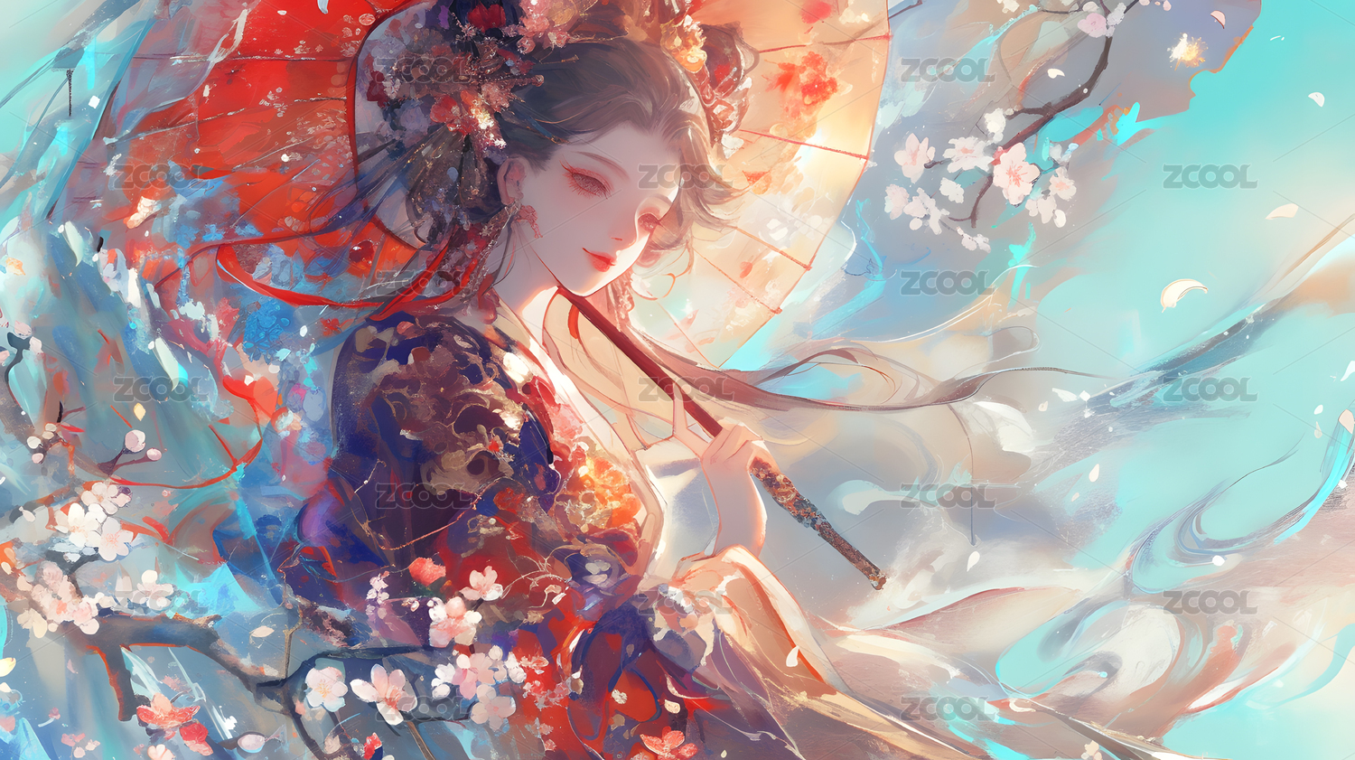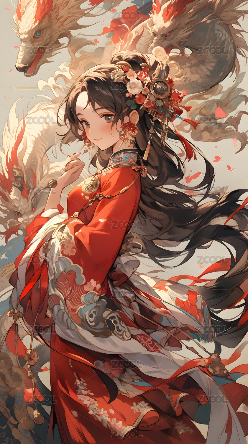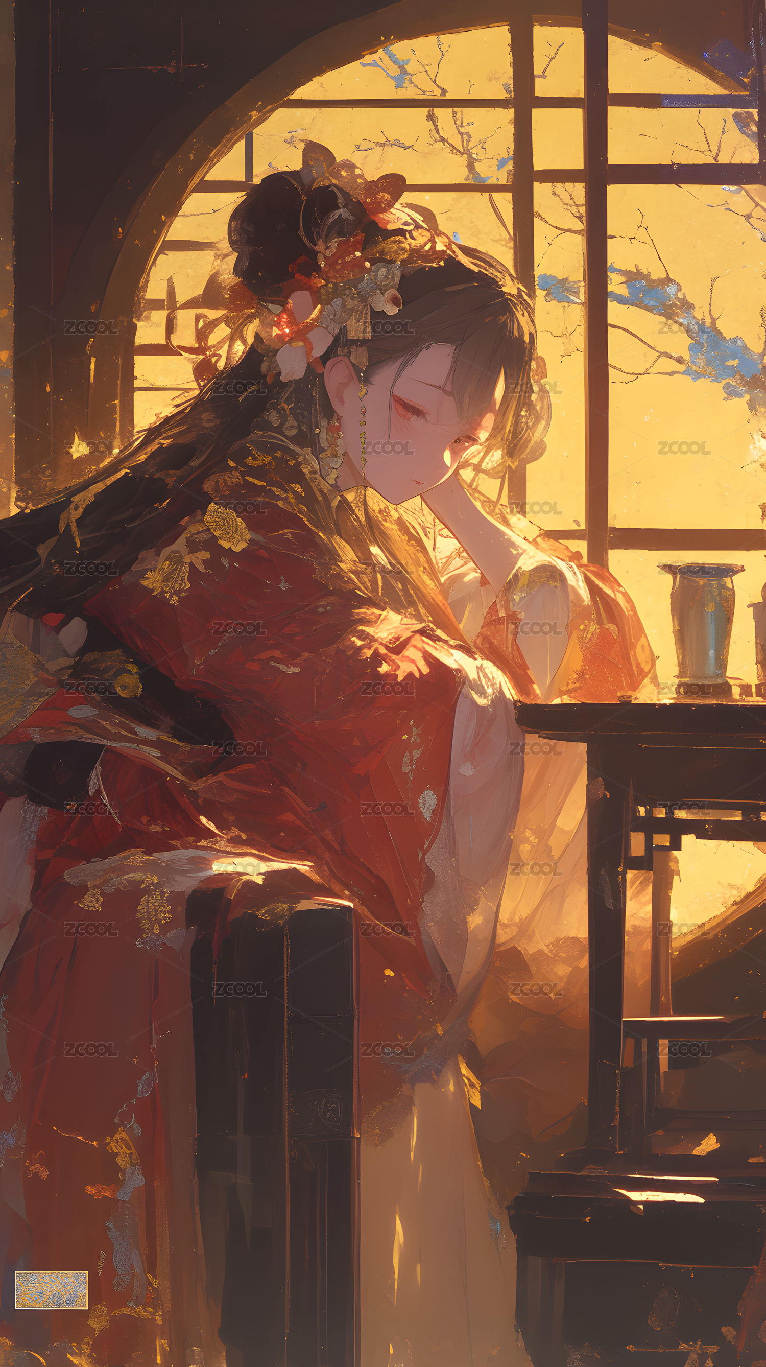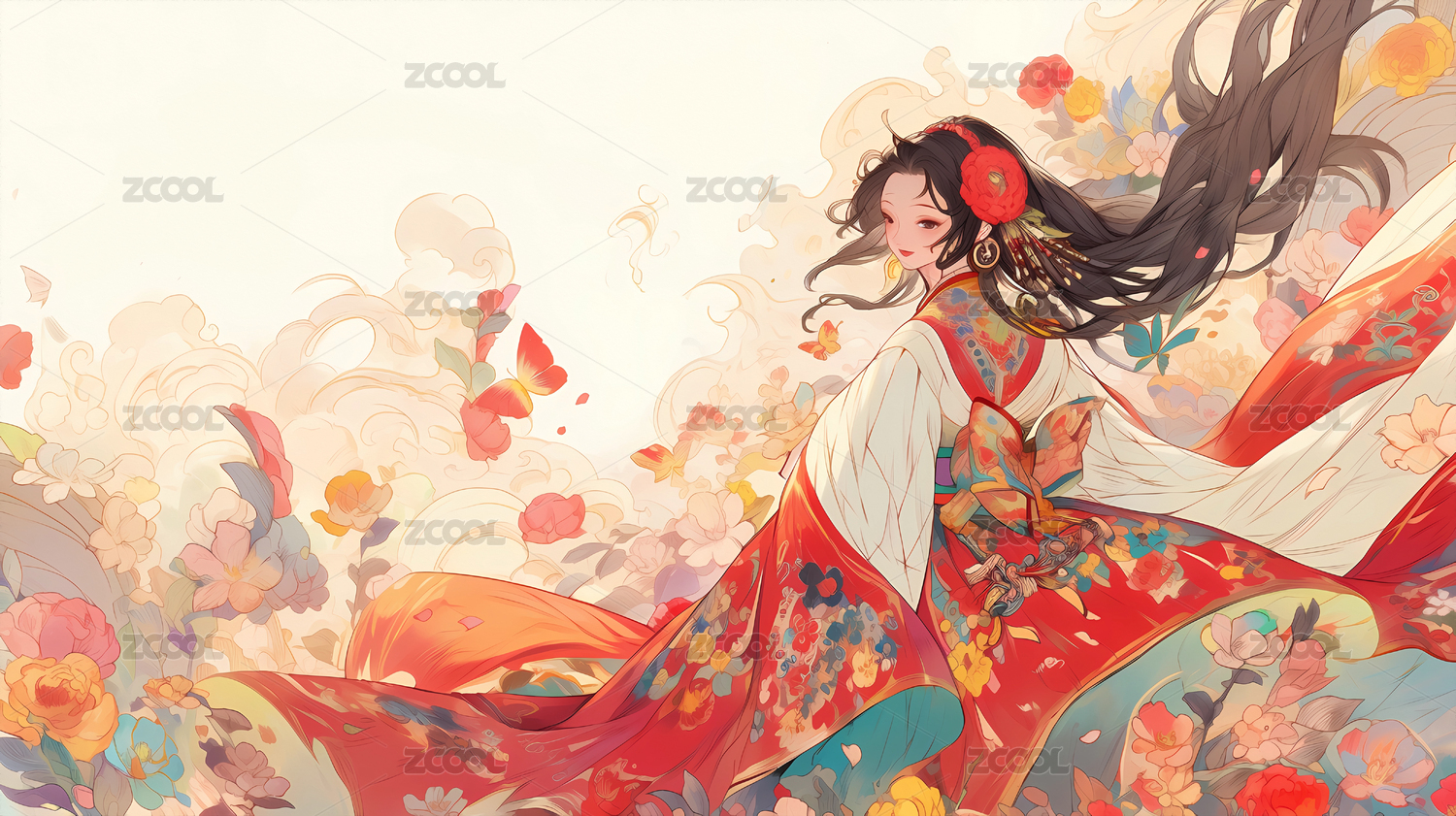 手绘卡通动漫唯美可爱的中国古风古装女孩插