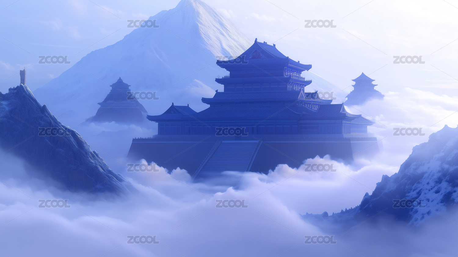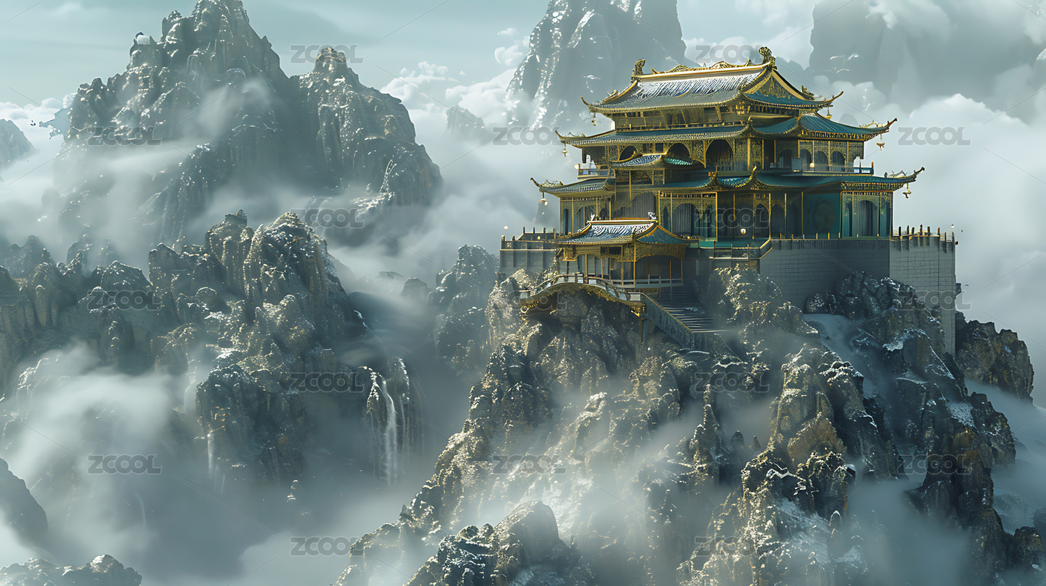 AIGC202407,凌霄,宝殿,西游记,天宫,云雾,仙境