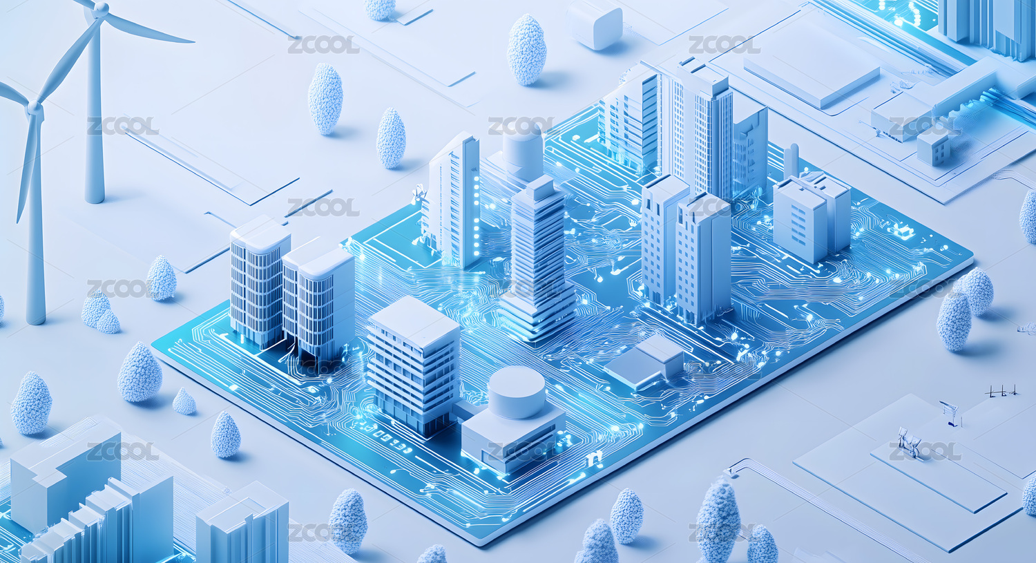科技,芯片,蓝色,发光,互联网,3D,三维,AIGC,金属,海报