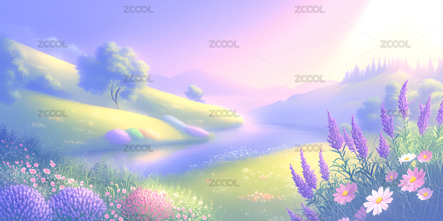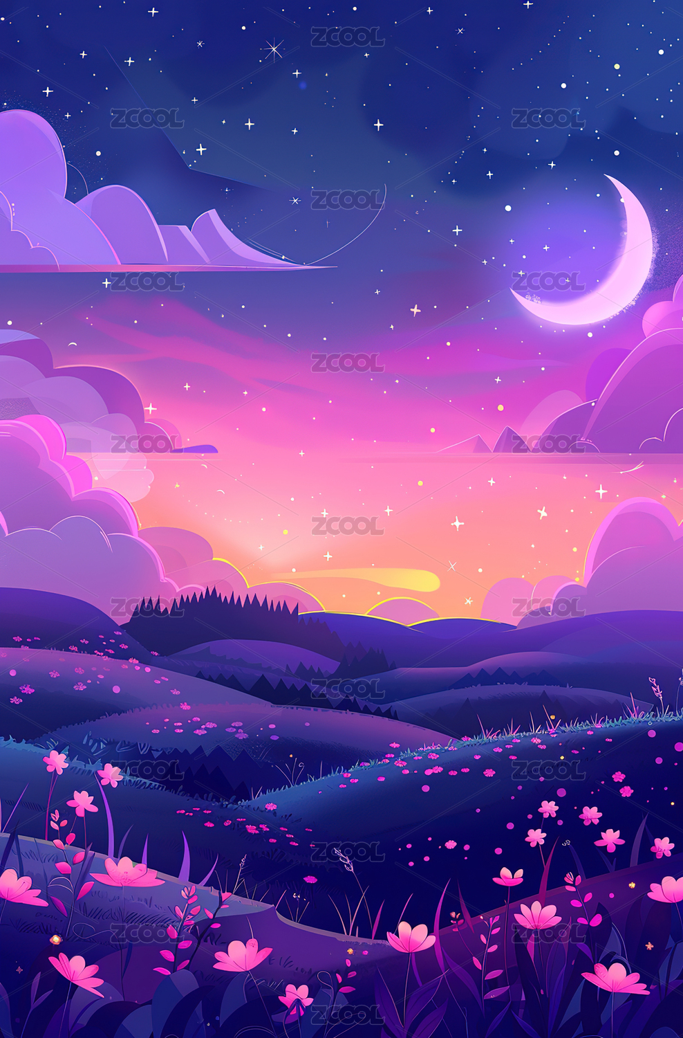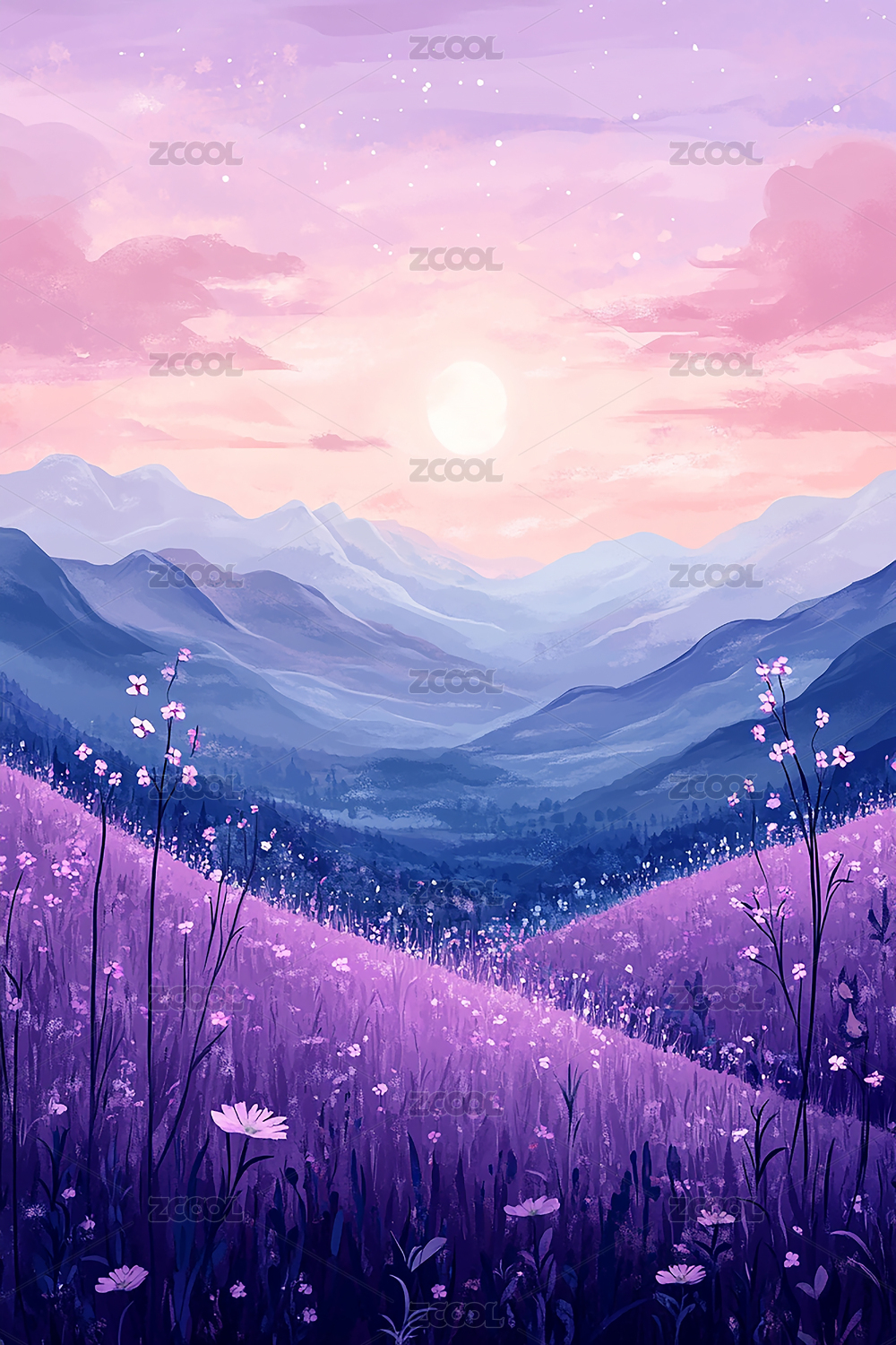 背景,插画,唯美,风景,天空,景色,山,自然,绘画,主视觉