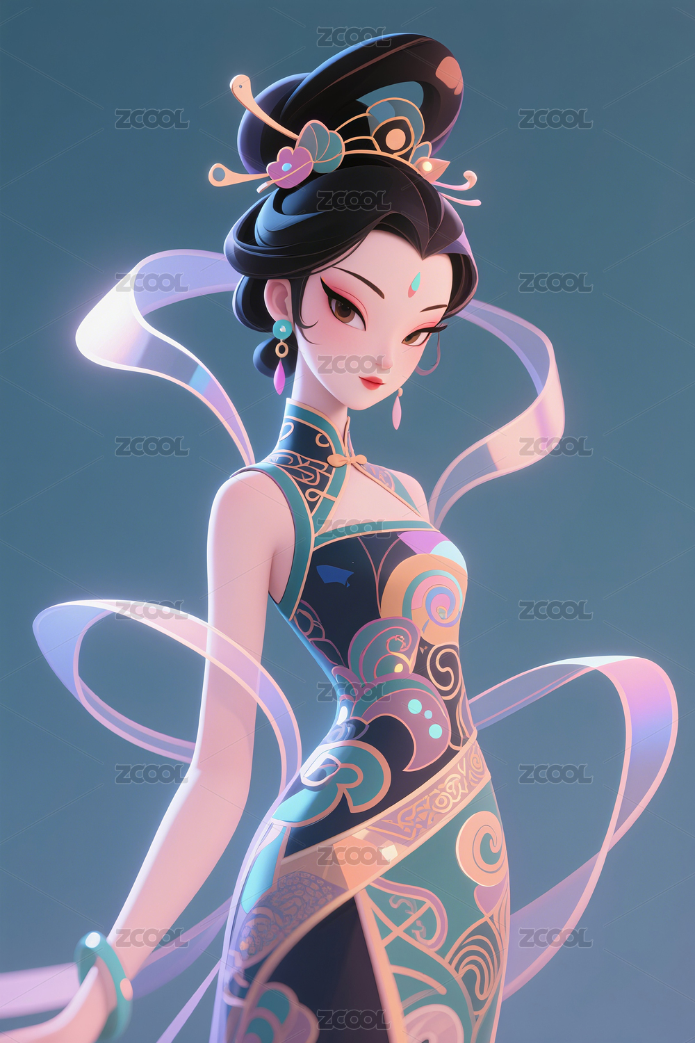 古风3D人物中国风传统文化国风角色插画