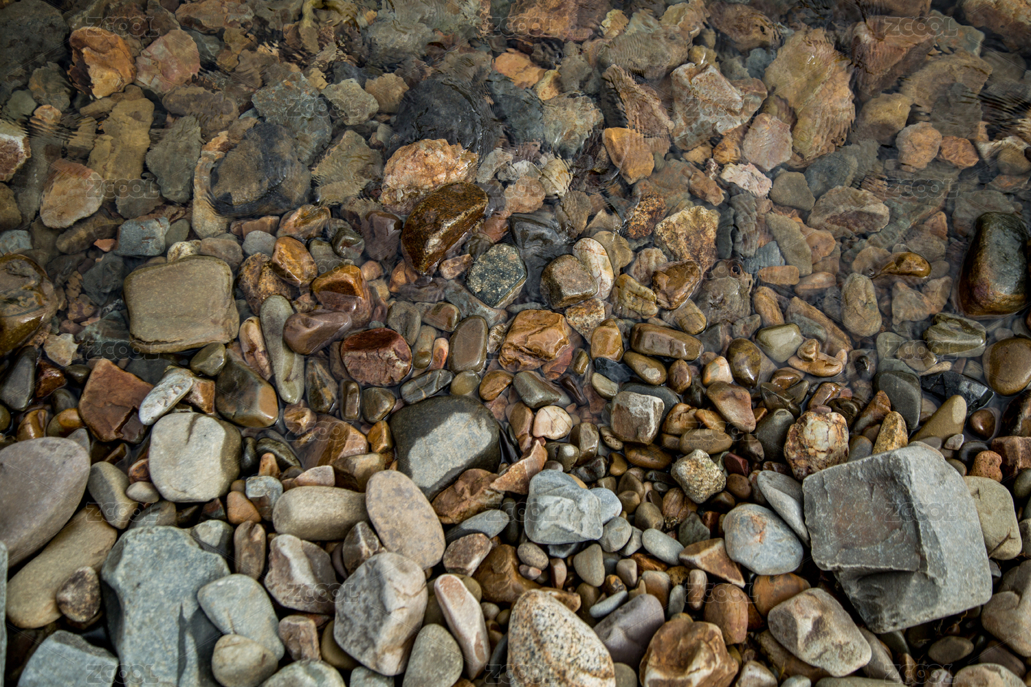 阳光穿过清澈的溪水在床底乱石上映衬出变幻的水波纹