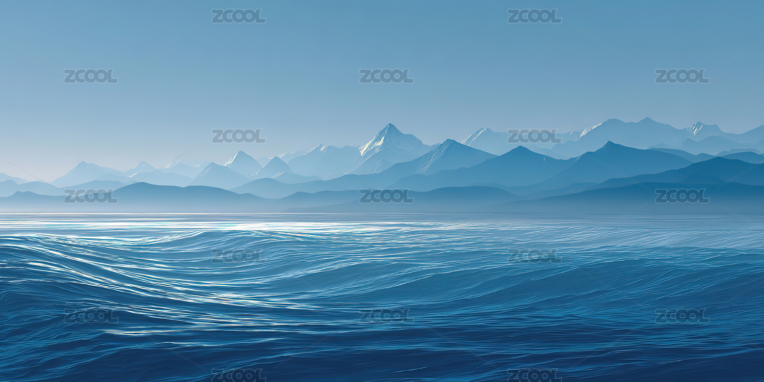 群山边海浪插画