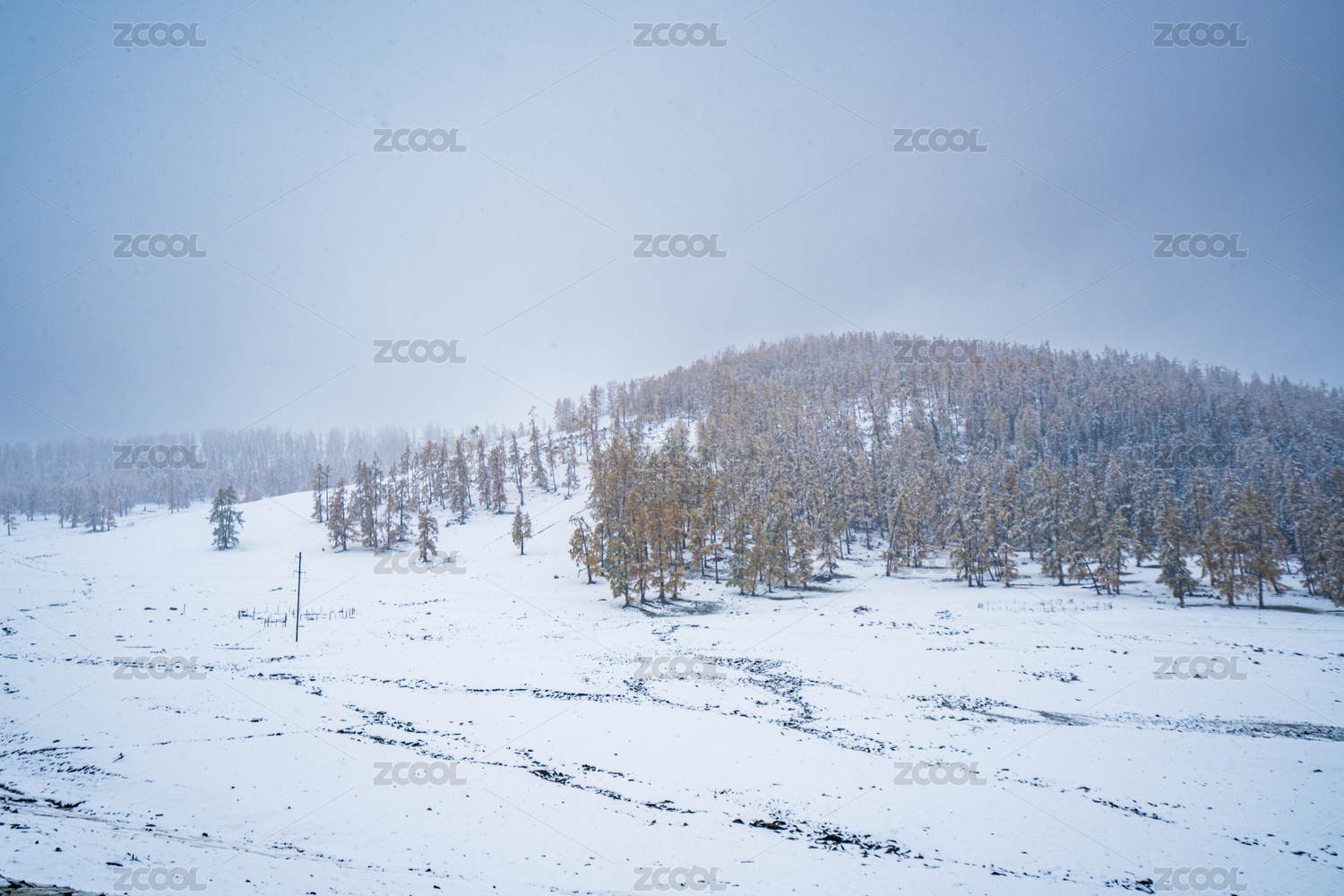 中国新疆伊犁的库尔德宁景区的冬季自然风光