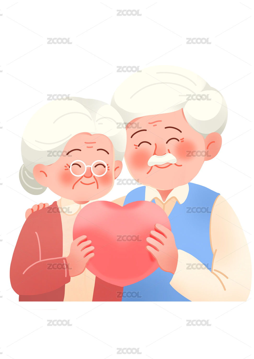 手绘白底两位健健康康的老人