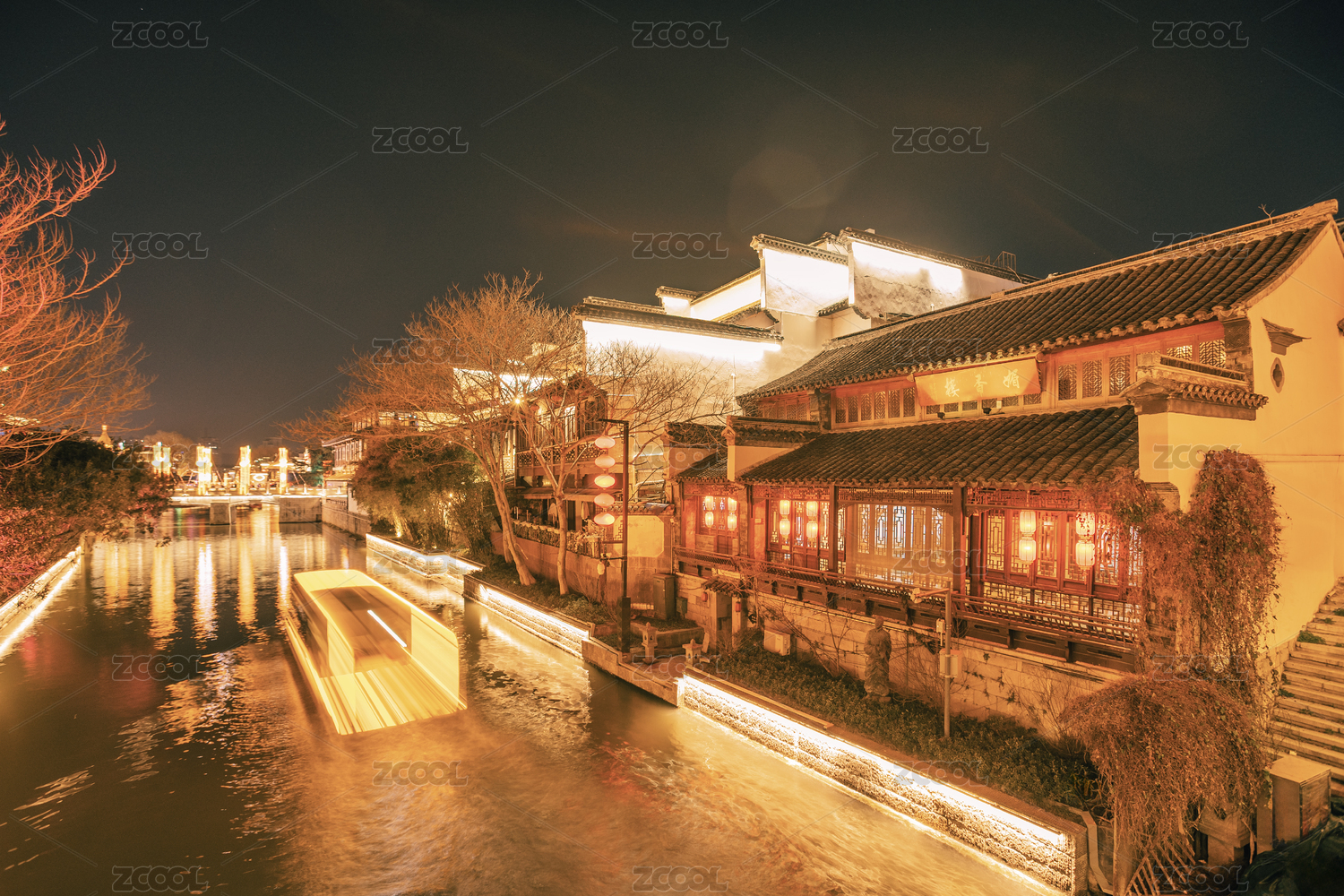 梦里水乡古韵新景浙江绍兴柯桥古镇夜色