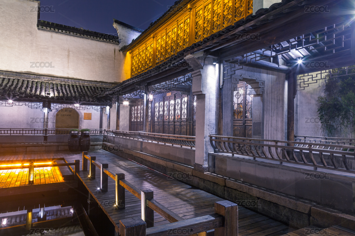 浙江嘉兴嘉善,新西塘越里古镇景区夜景