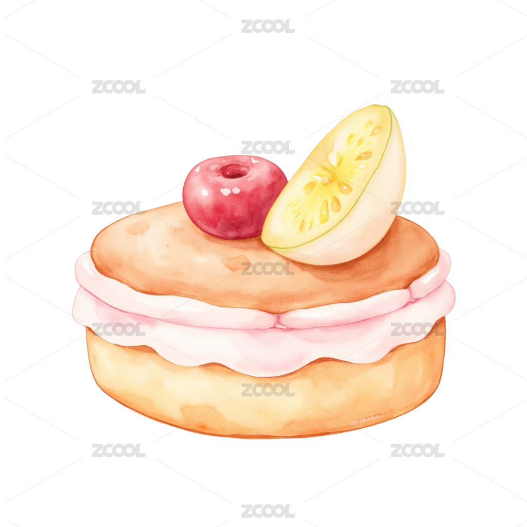 水彩手绘蓝莓蛋糕元素印花图案设计插图素材