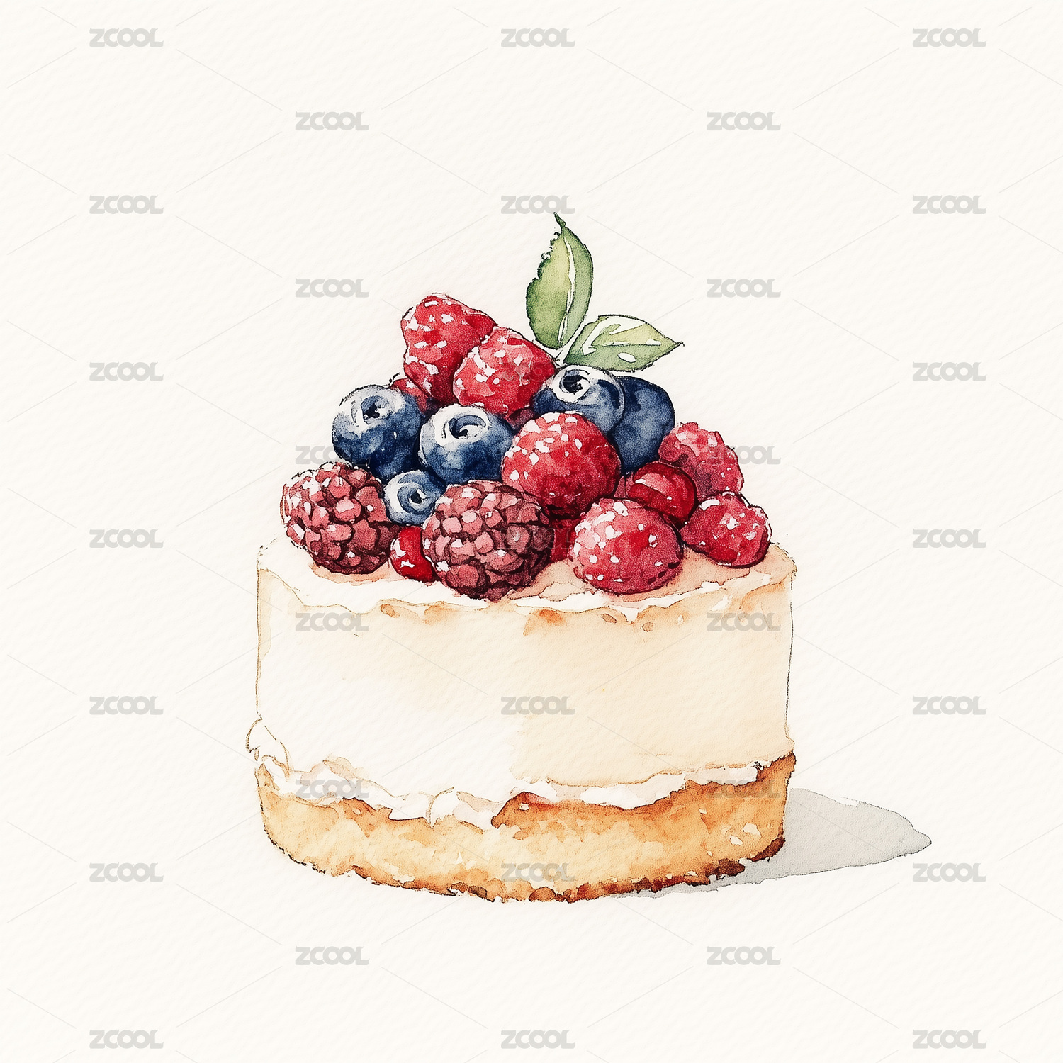 手绘水彩蛋糕系列蓝莓芝士蛋糕