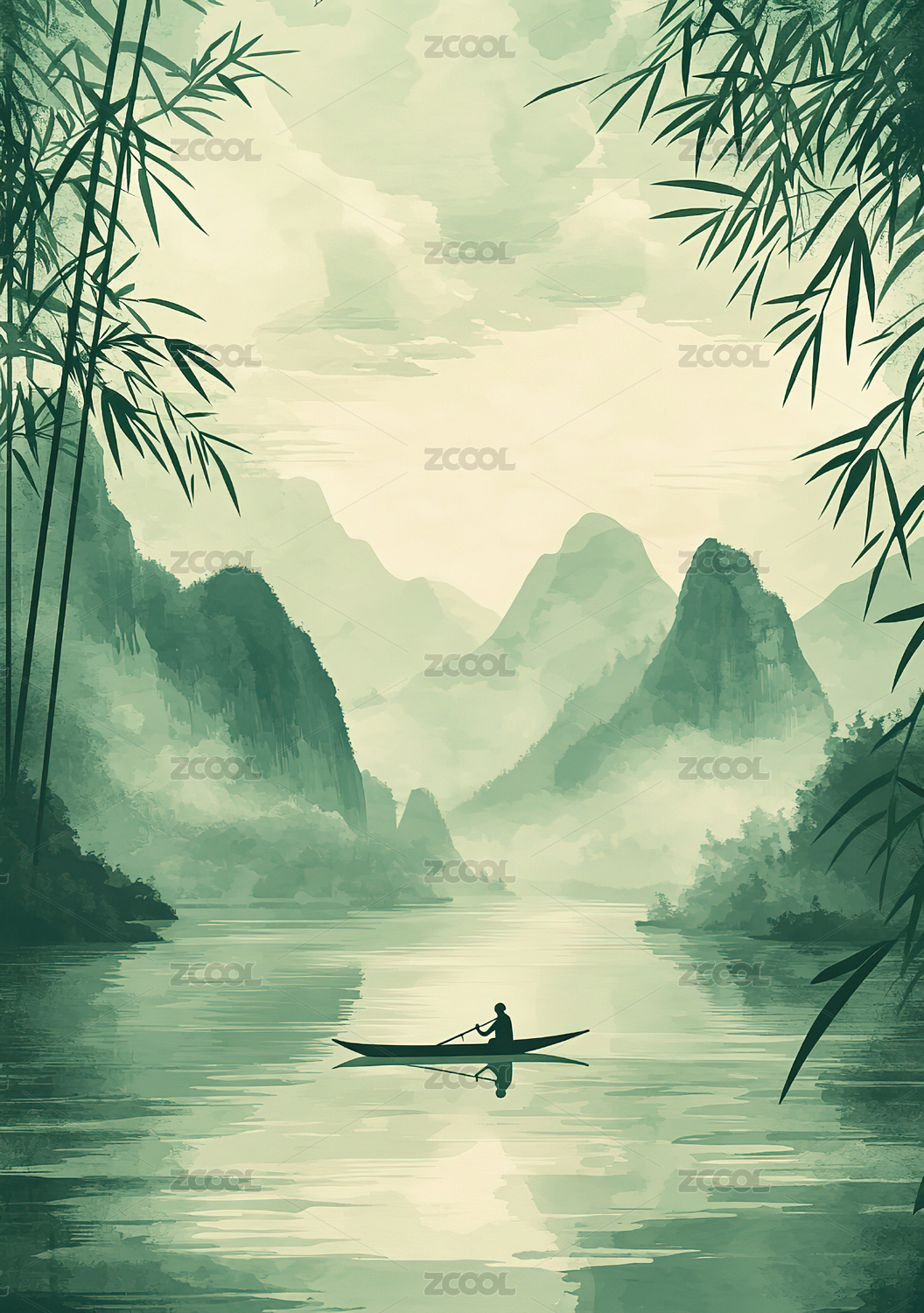 竹林幽径小舟泛波