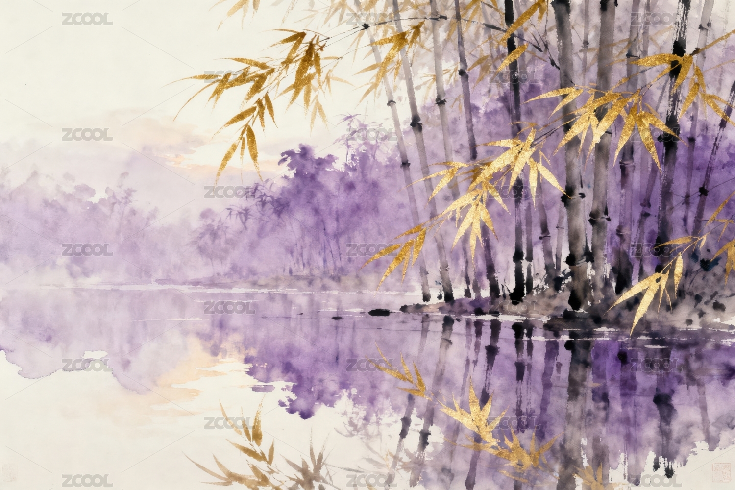 紫色竹林倒影