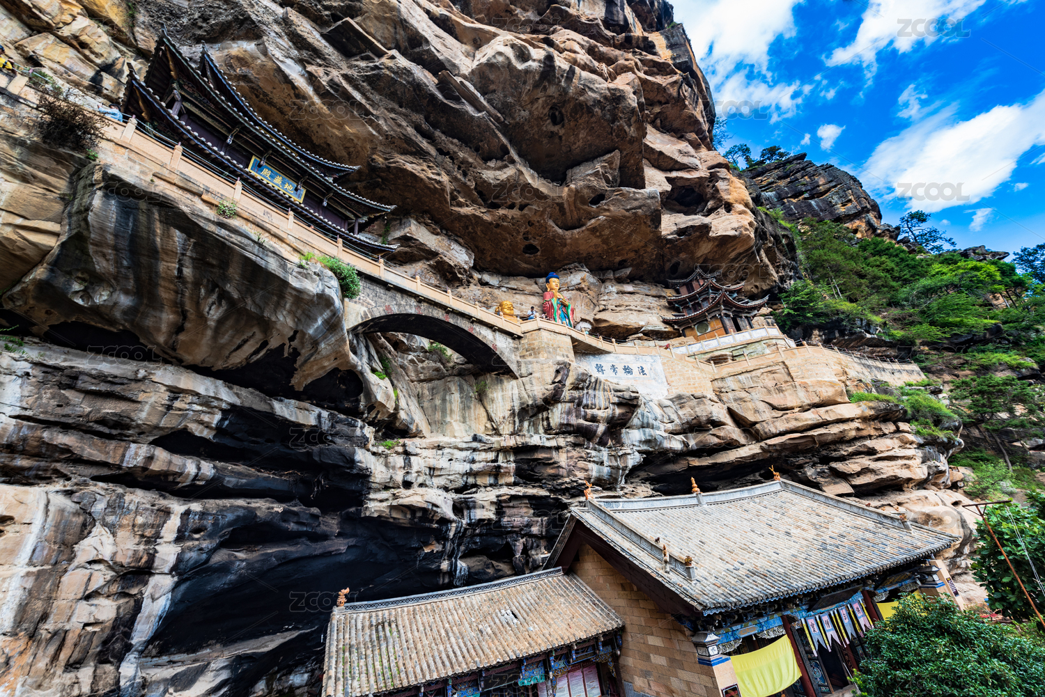 中国云南大理剑川县石宝山夏季寺庙和石刻风光