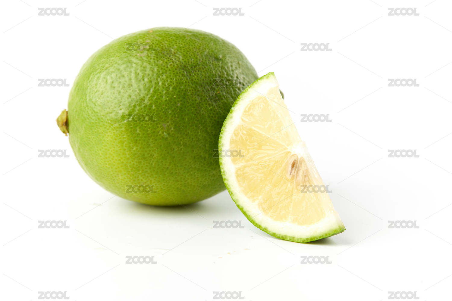 白色背景清香的青柠果肉特写