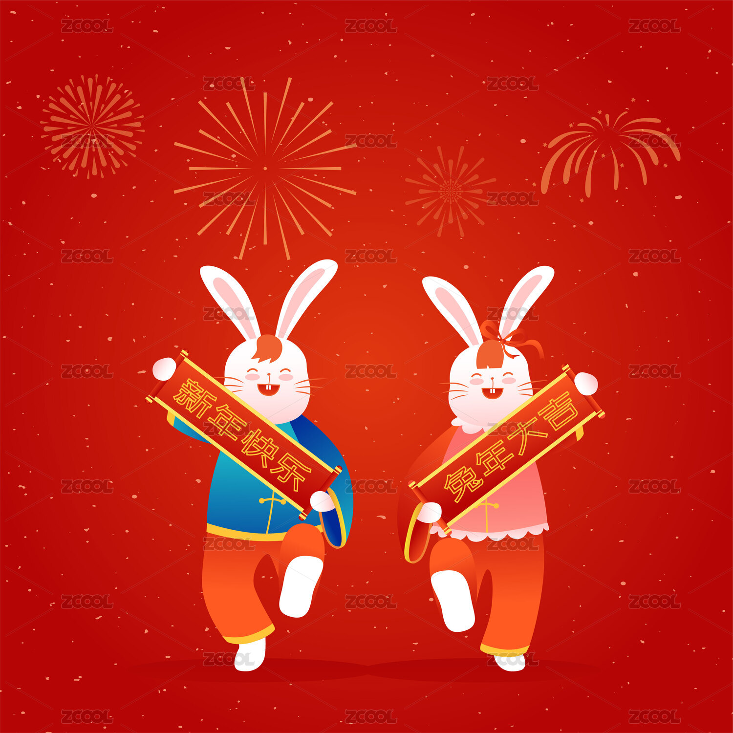 兔年福娃矢量插画