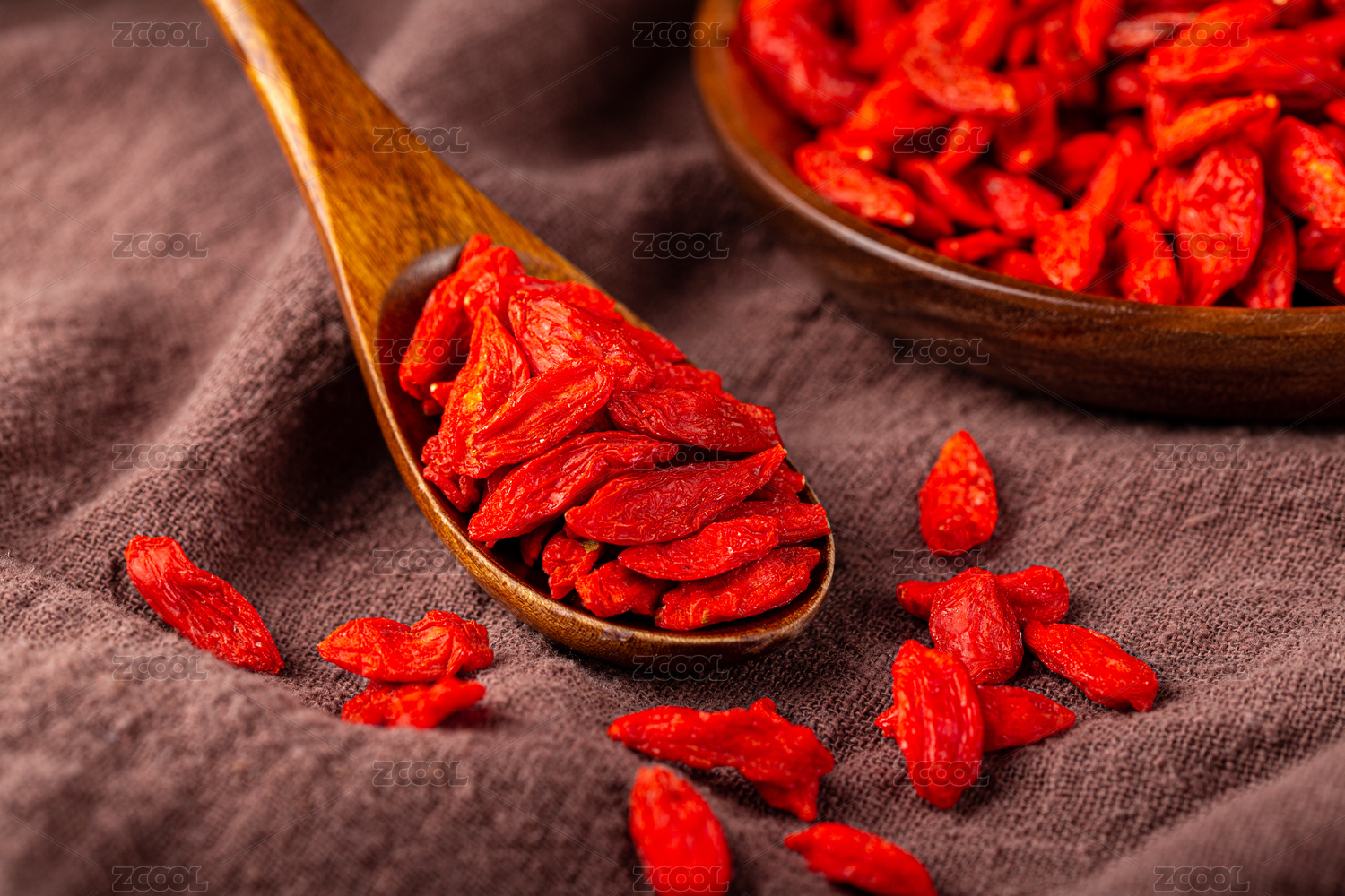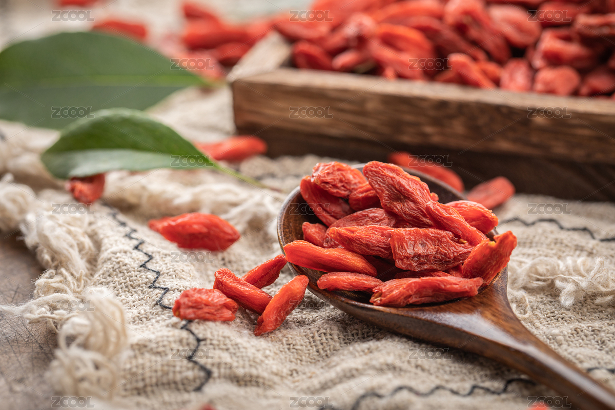 木勺上舀着红枸杞