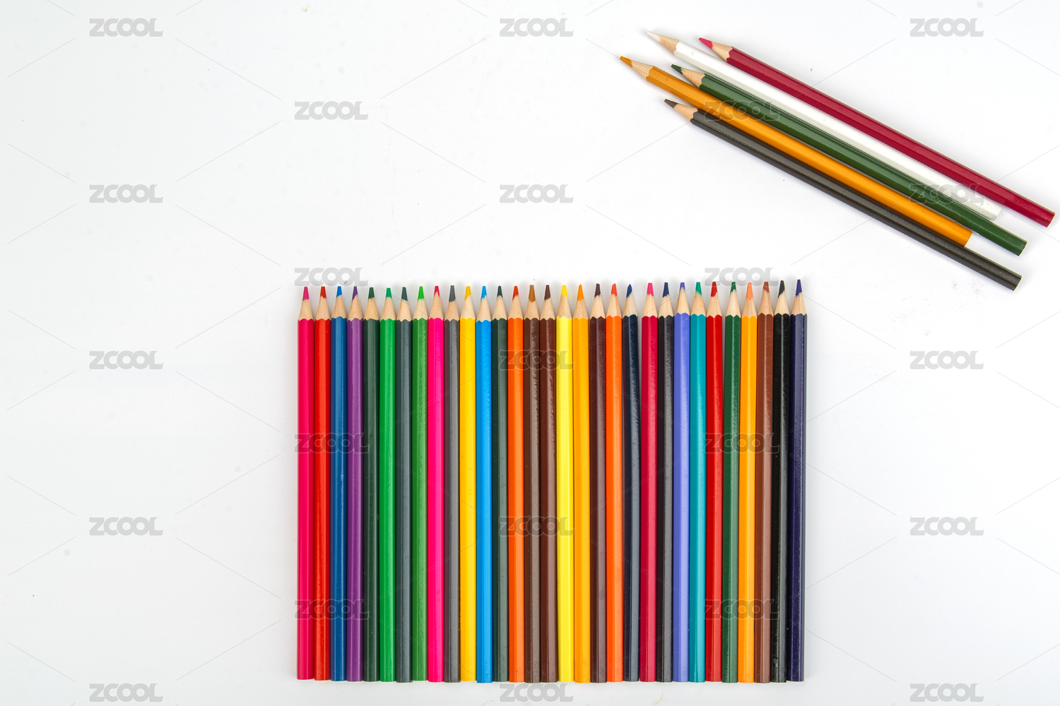 彩色铅笔平铺在白背景