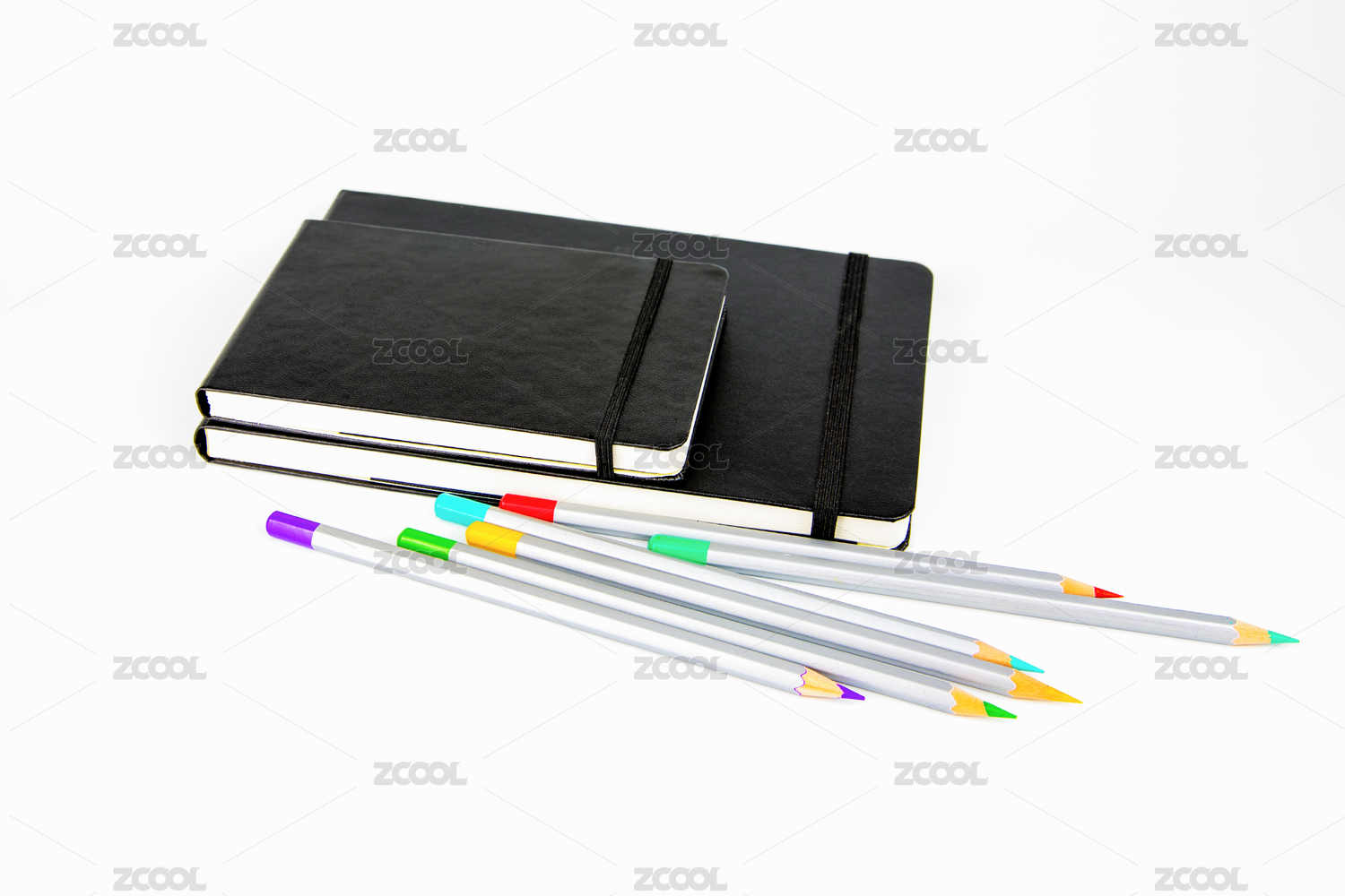 笔记本和彩色铅笔,白色背景