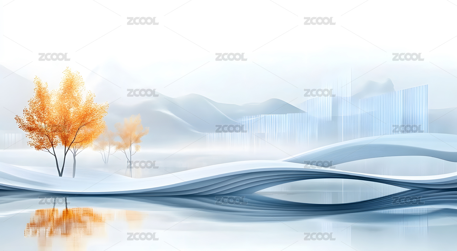 抽象城市中央商务区天际线倒影