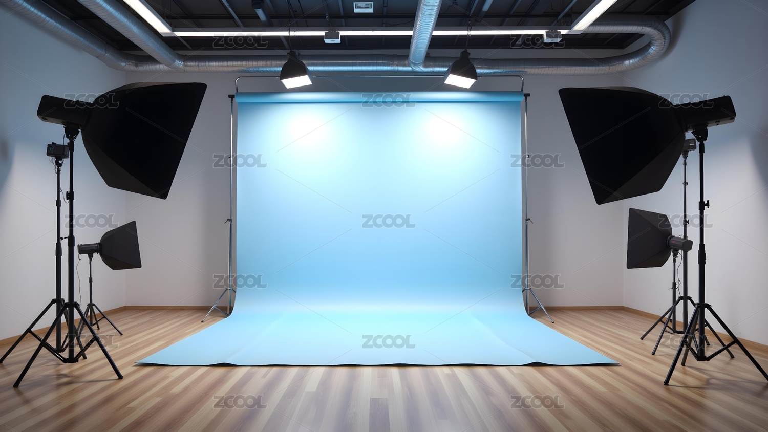 商业摄影棚里的闪光灯柔光箱组合和反光板
