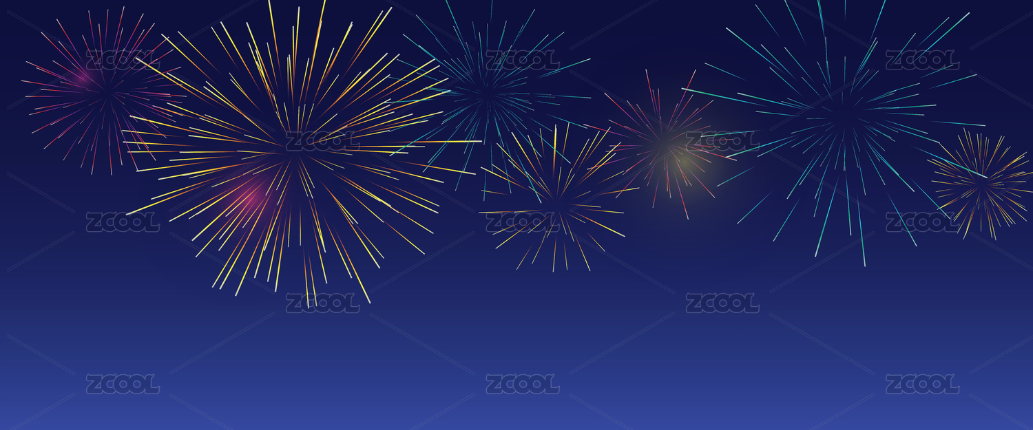 蓝色背景下蓝色夜空绽放的彩色烟花背景插画
