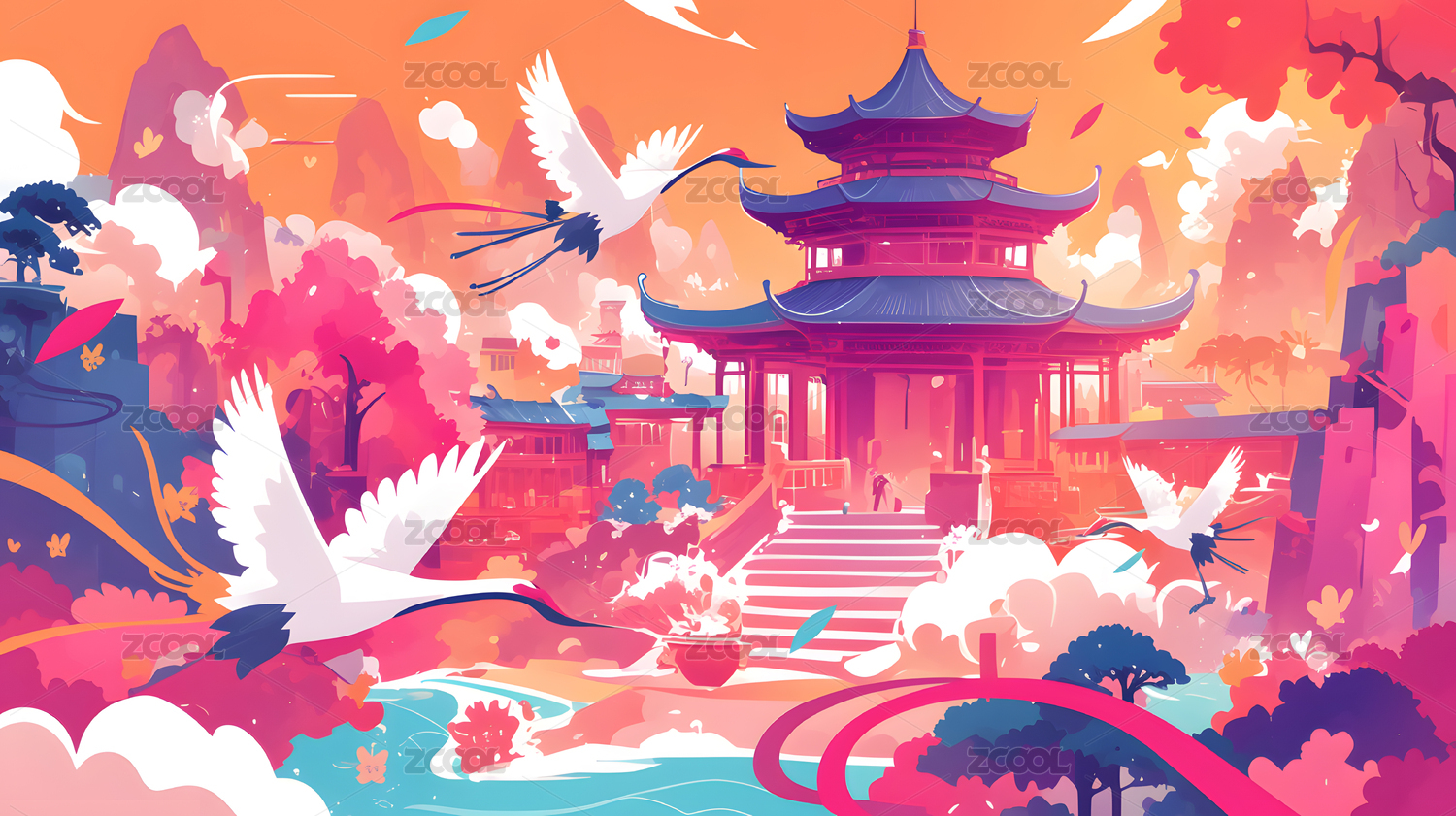 HEYYTDK2023,中秋节,中国风,国朝,国风,宫殿,仙鹤,节日,团圆,天宫