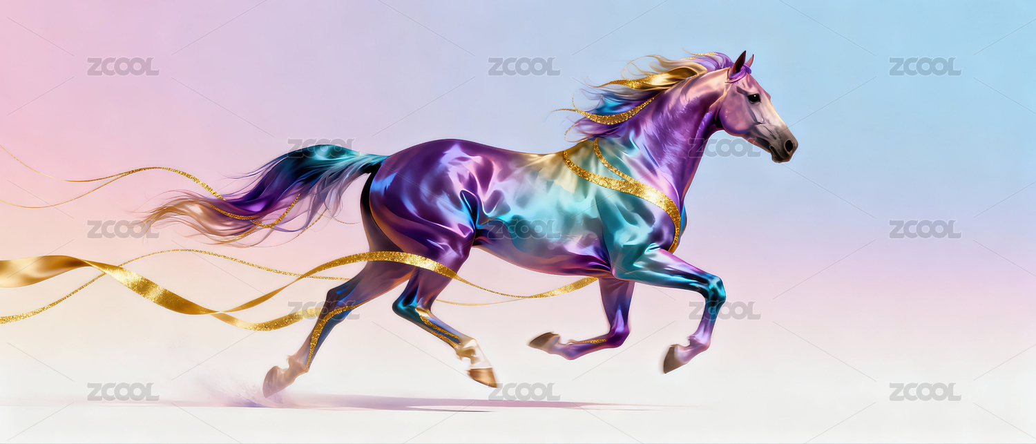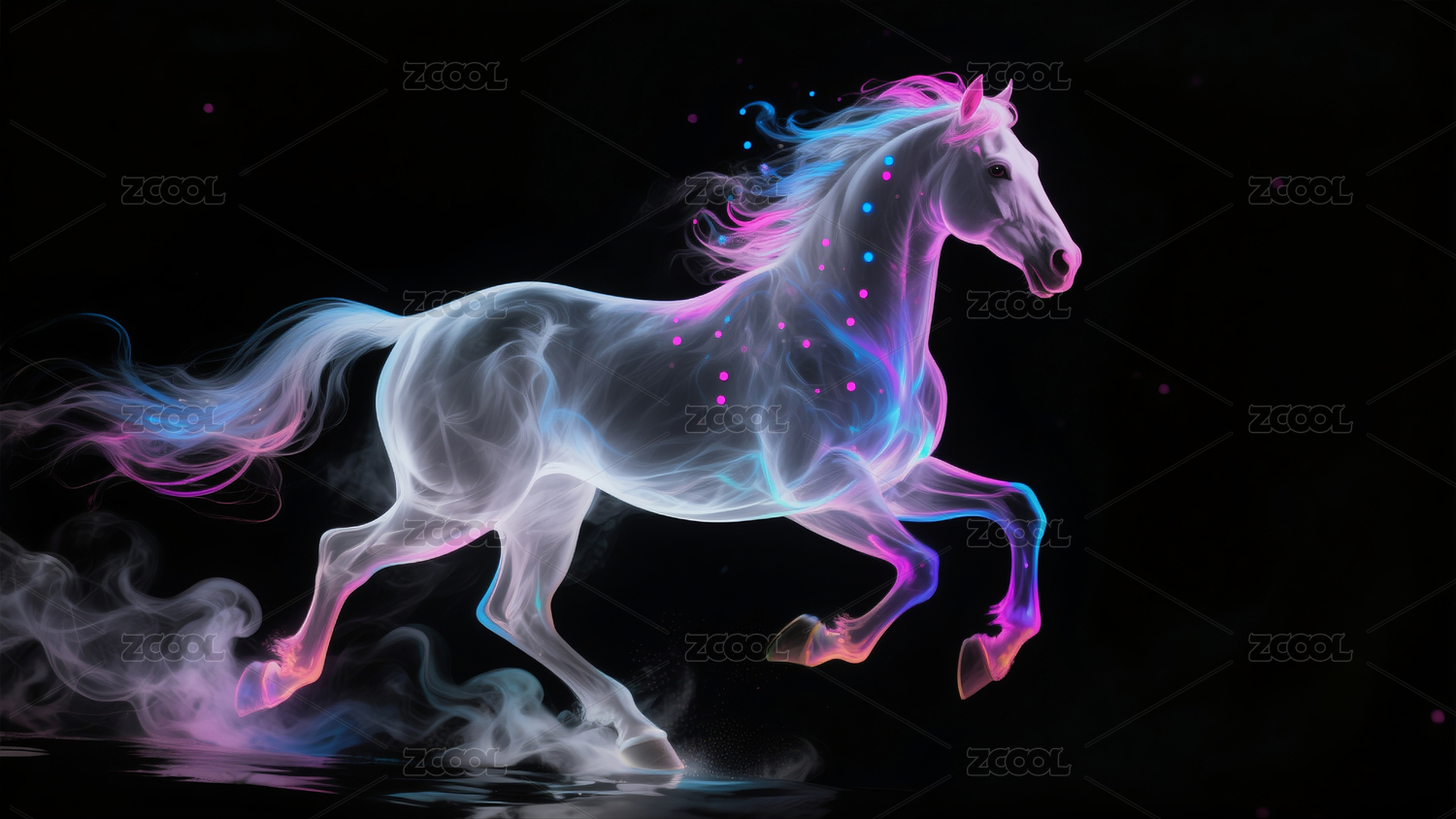 抽象光线构成奔跑的马匹线条绚丽多彩