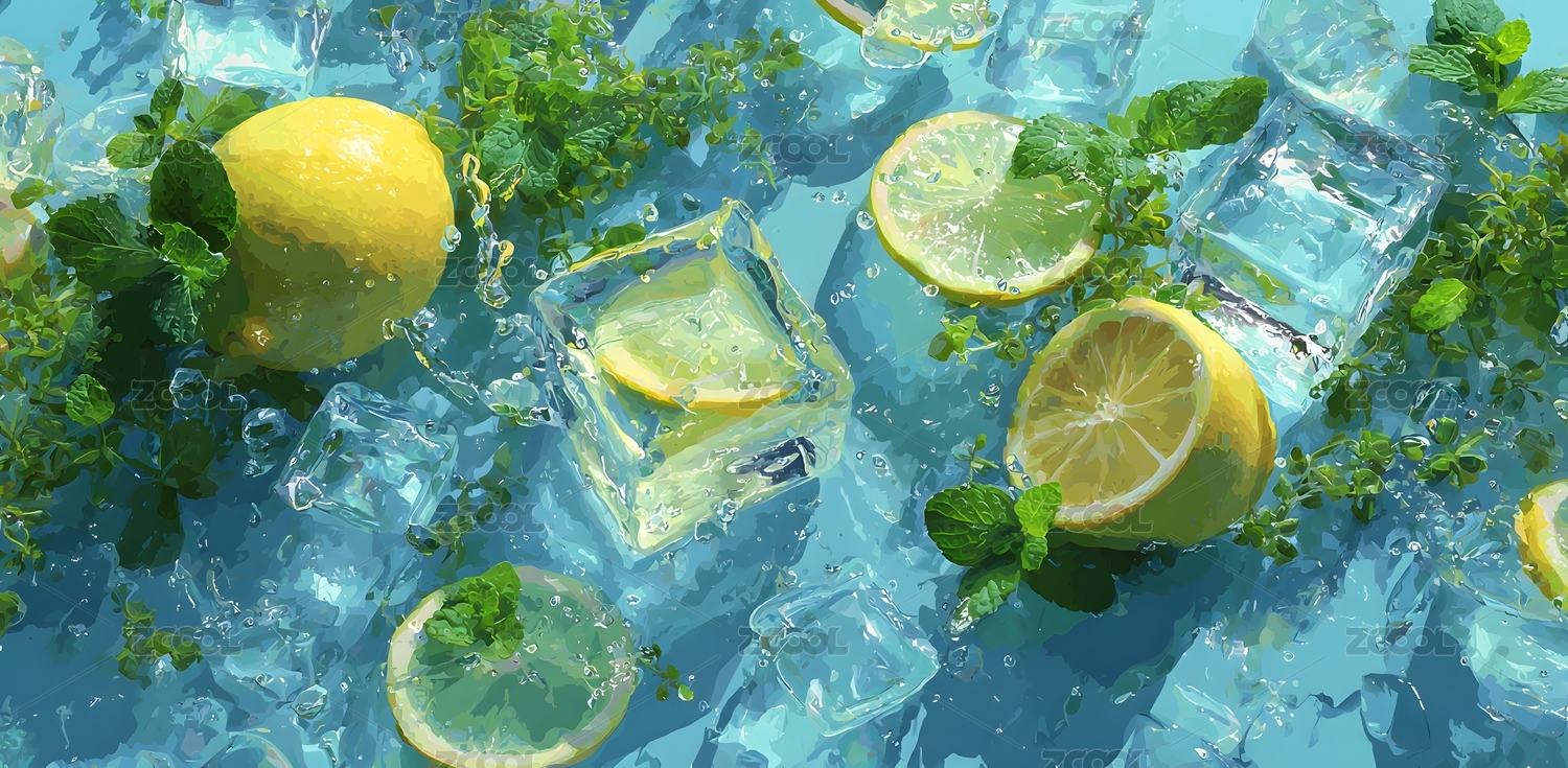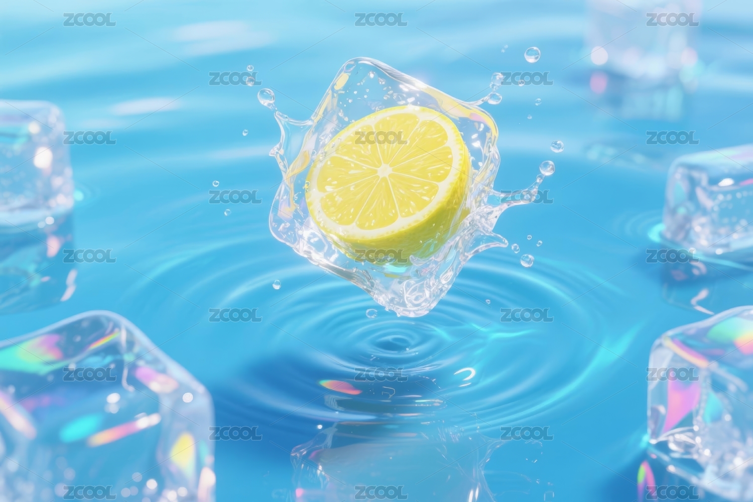 夏天,柠檬,冰块,水,凉爽,清新,切片,水果,健康,饮料