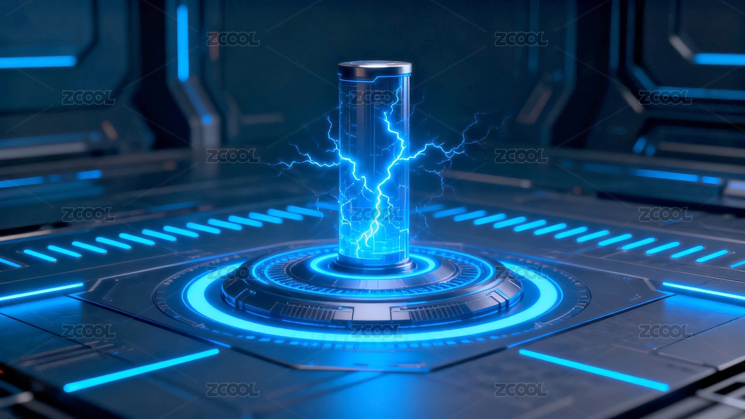 蓝色光芒闪电的科幻装置