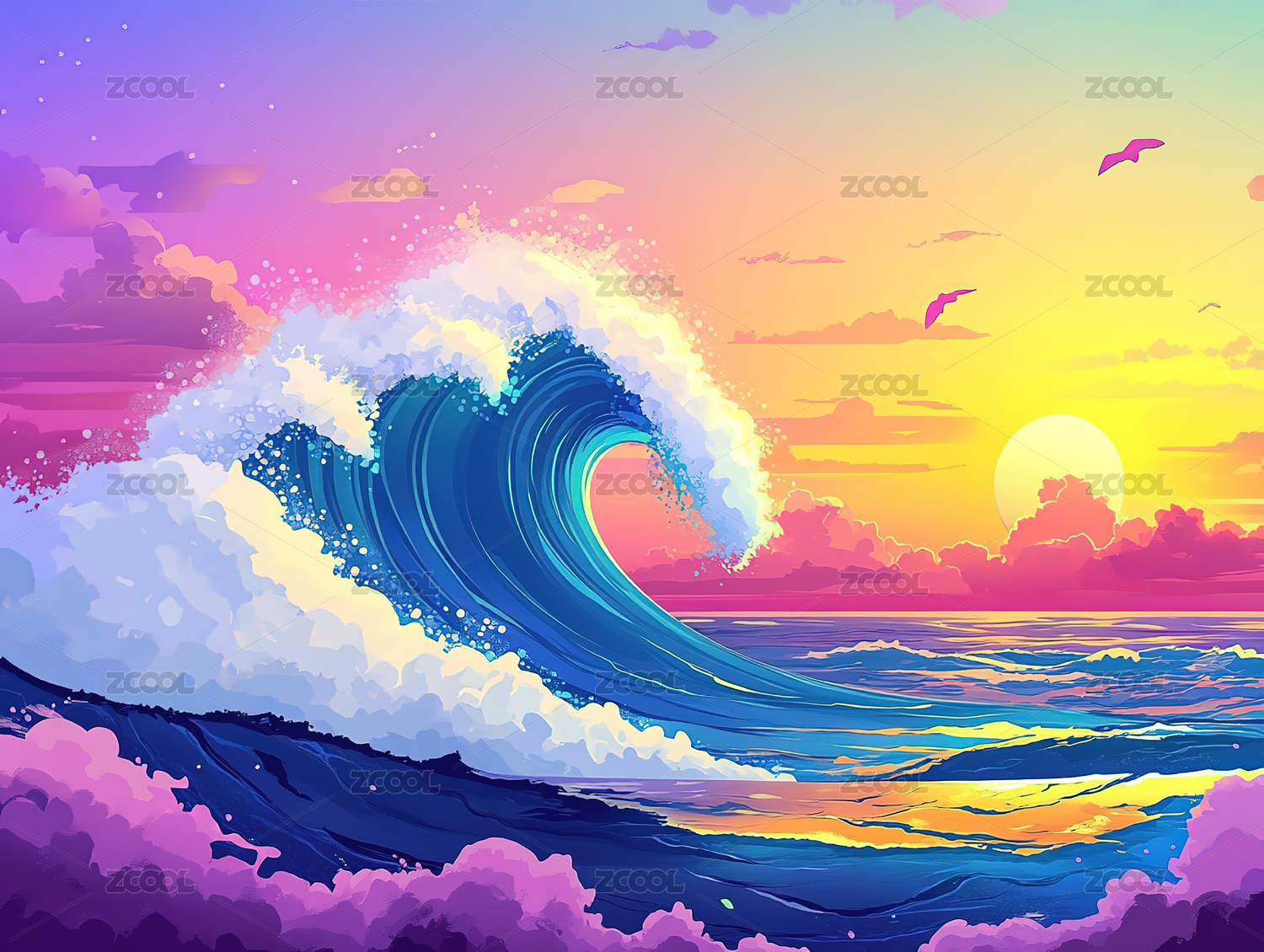 自然,海洋,AI数字艺术,水,波浪,插画,背景,天空,云,风景
