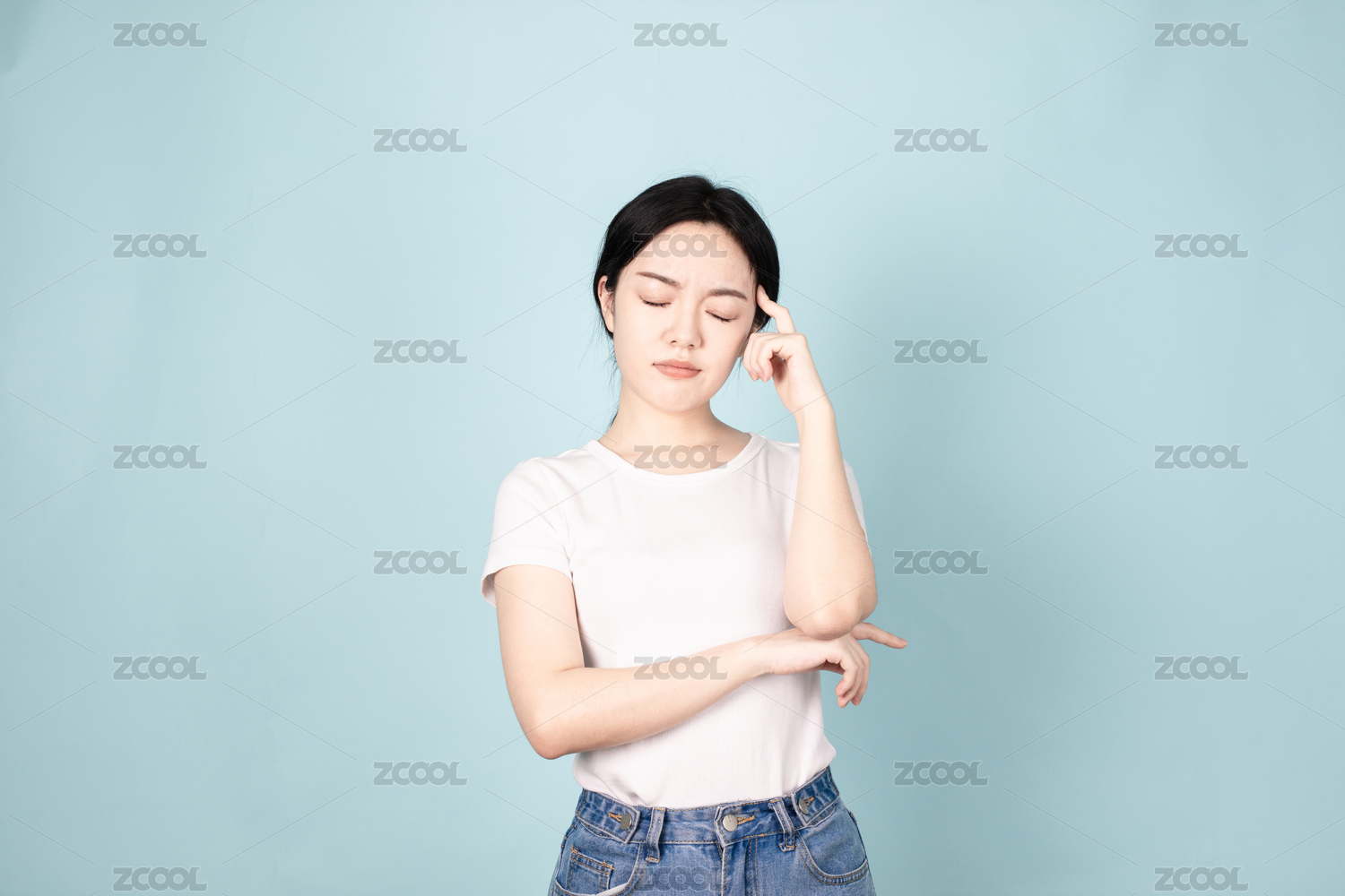 白色背景下做各种面部表情的可爱亚洲少女