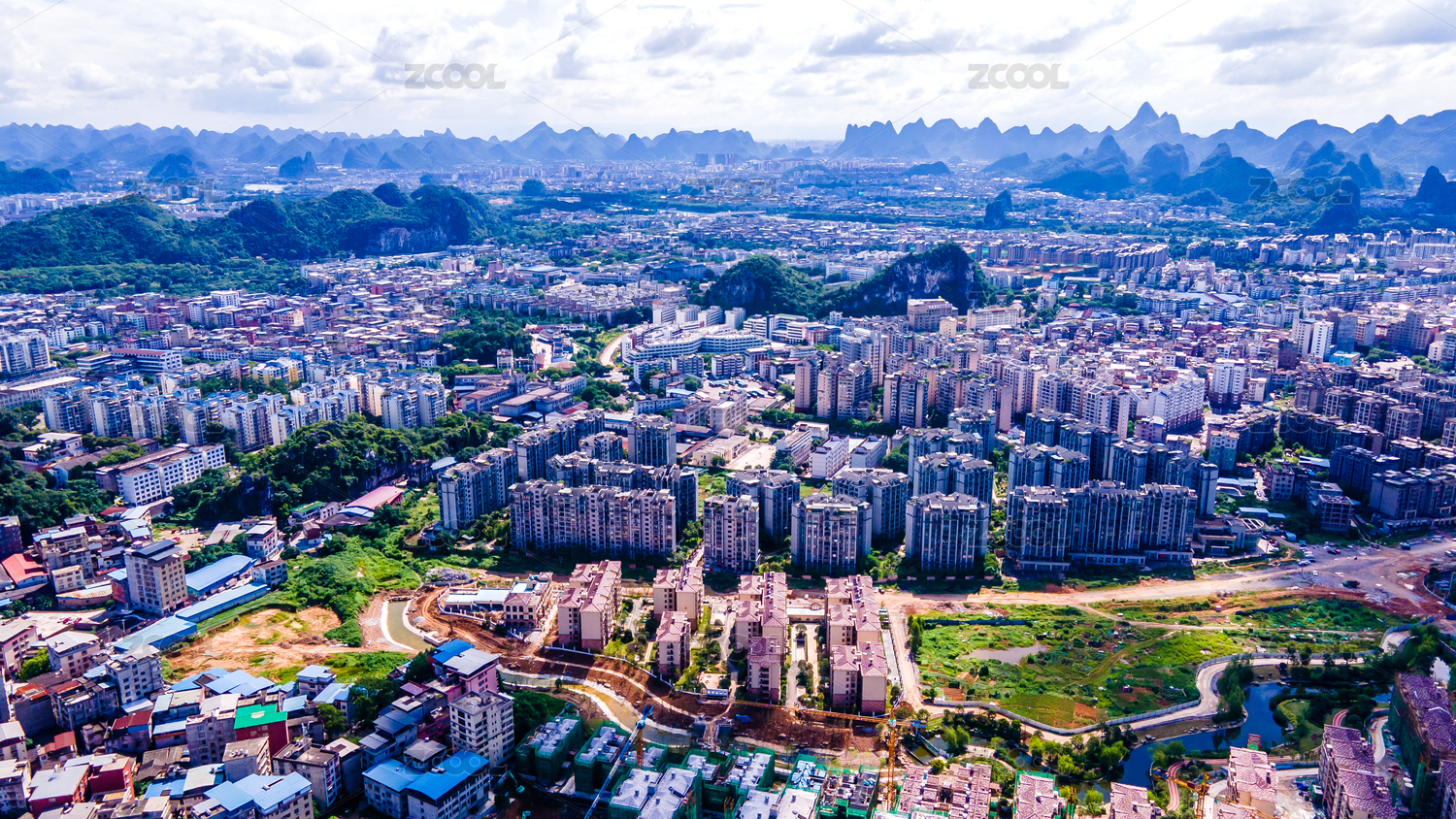 航拍桂林城市风景和建筑物