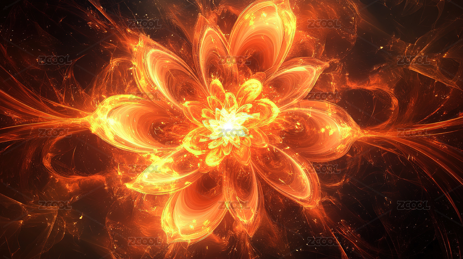 宇宙星云中绽放的火焰莲花,绚丽夺目