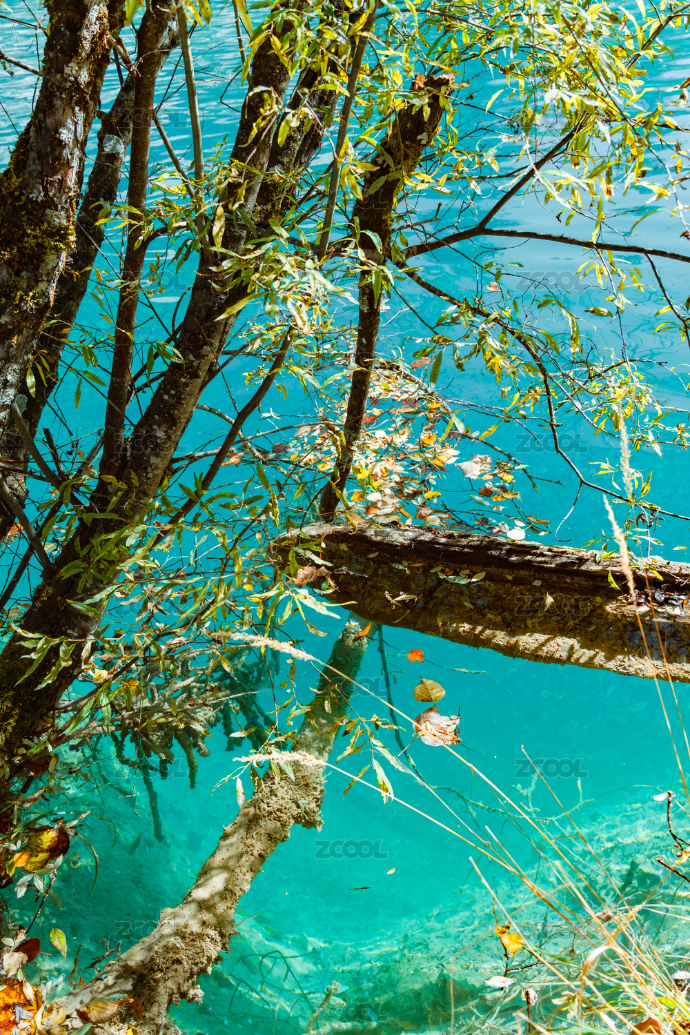 九寨沟名胜风景区卧龙海秋季彩林自然山水风