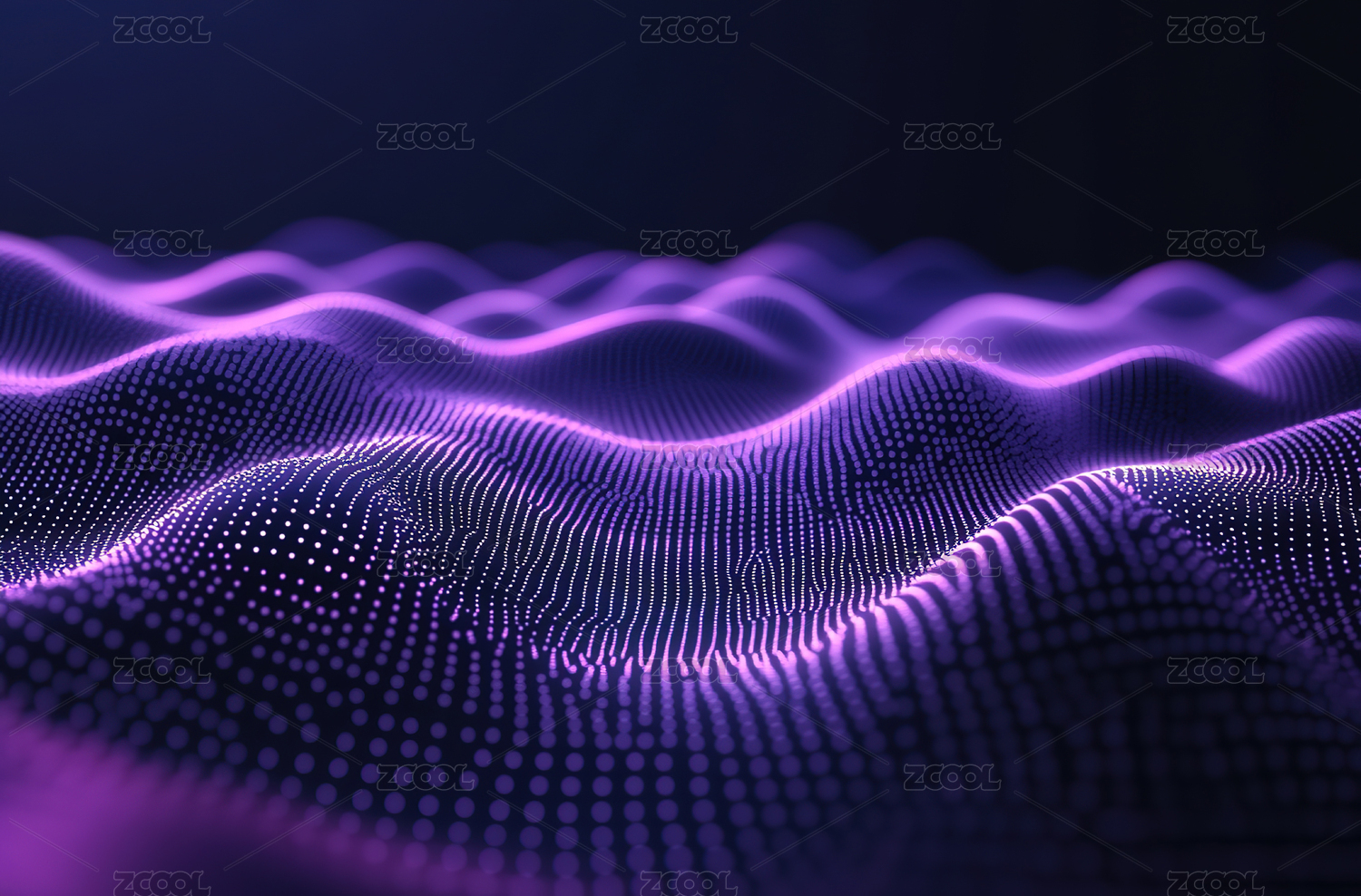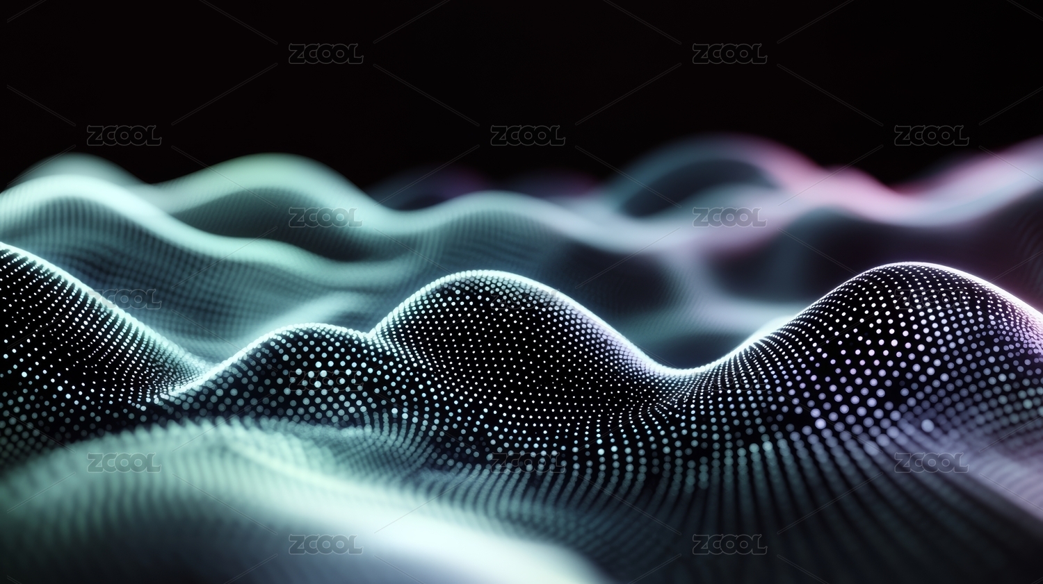 未来派3d波浪抽象背景, 数字绿色粒子概