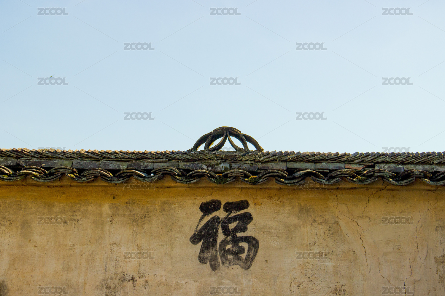 四川成都洛带古镇民居天井青瓦屋顶及防火墙