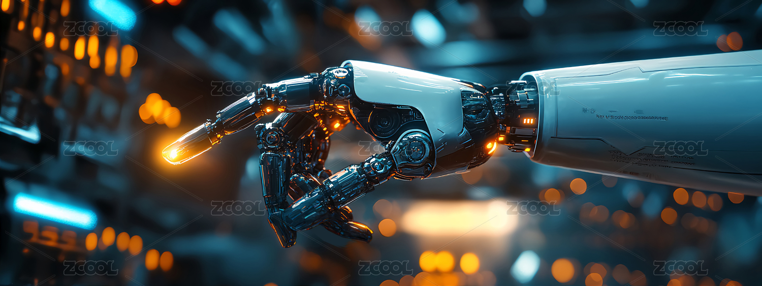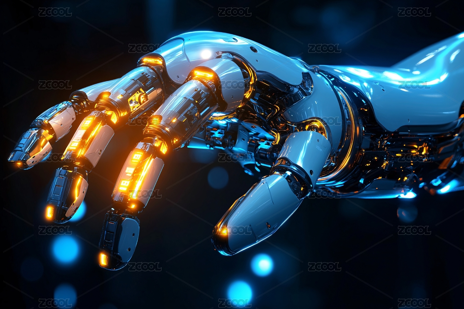 蓝色,橙色,发光,机械手,机器人,科技,人工智能,未来,自动化,机械