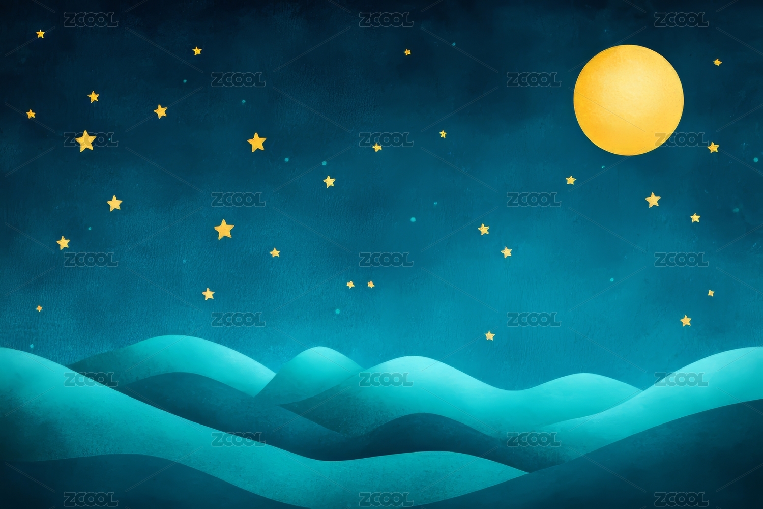 月夜山峦星空图