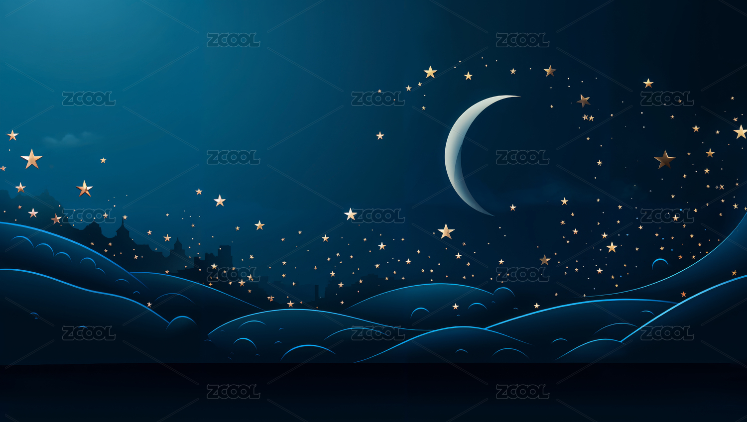 梦幻夜空中的新月与星辰