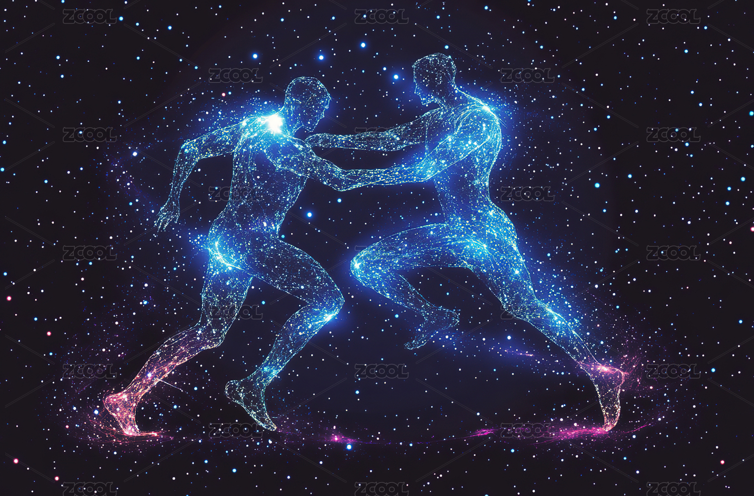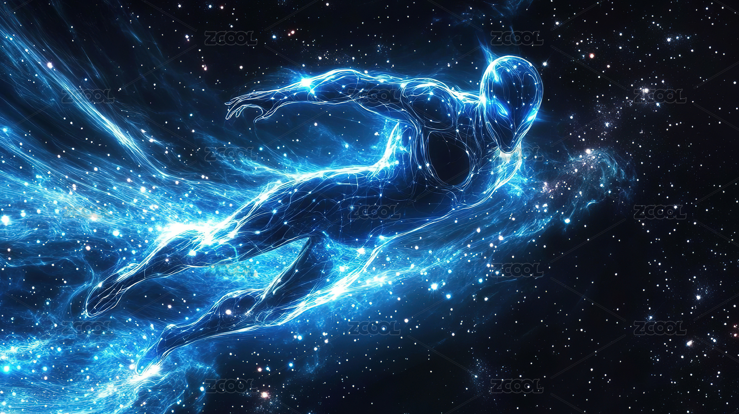 蓝色梦幻数字成像舞蹈家正在跳芭蕾舞