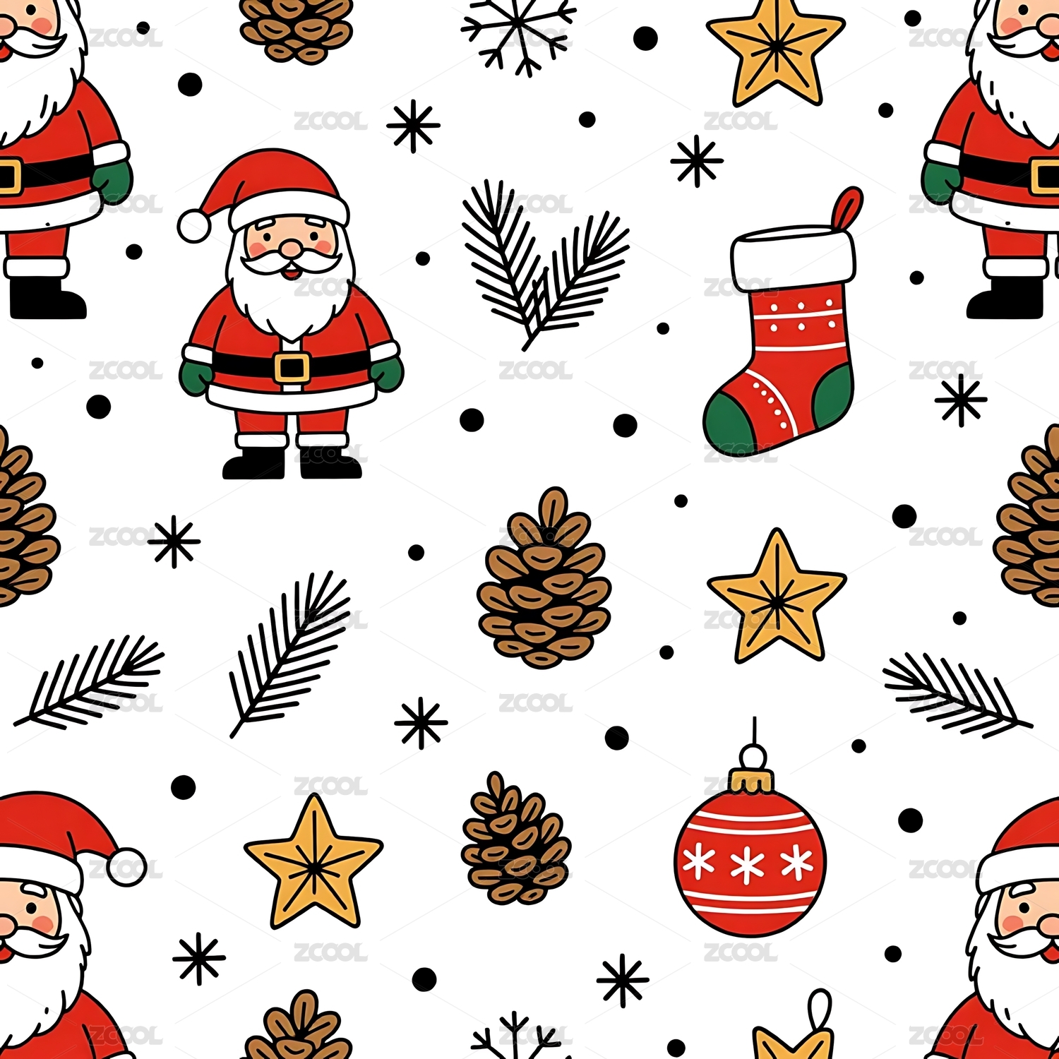 手绘卡通圣诞老人循环图案