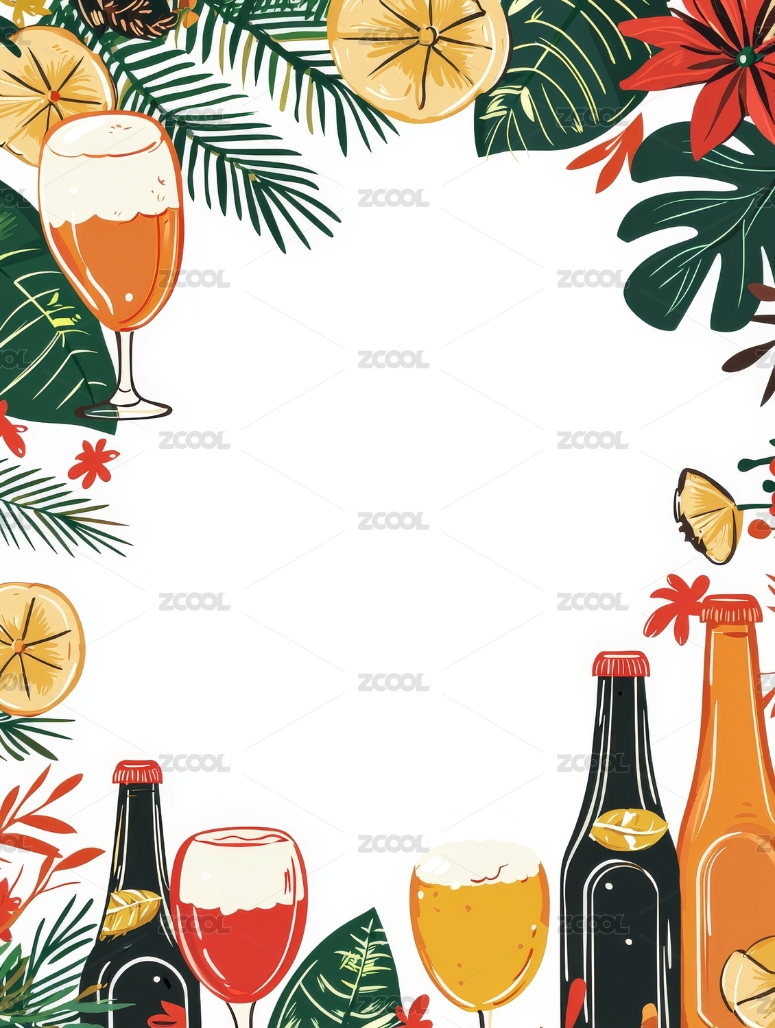 啤酒瓶和花卉装饰边框