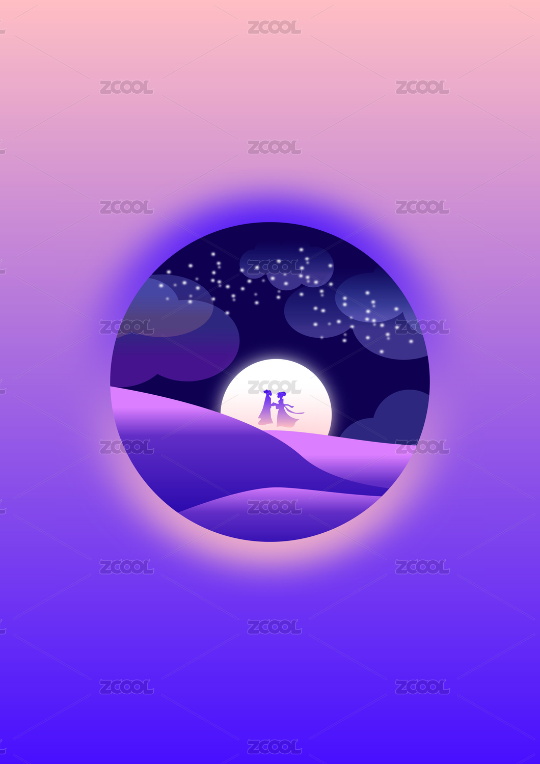 七夕情人节矢量插画矢量模板
