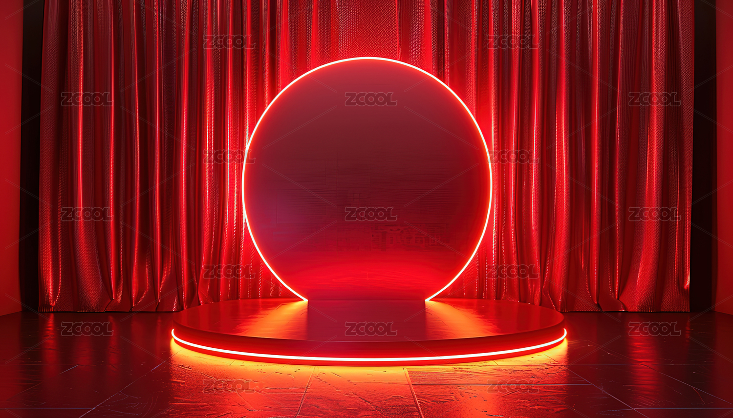 红色圆形光影舞台主题