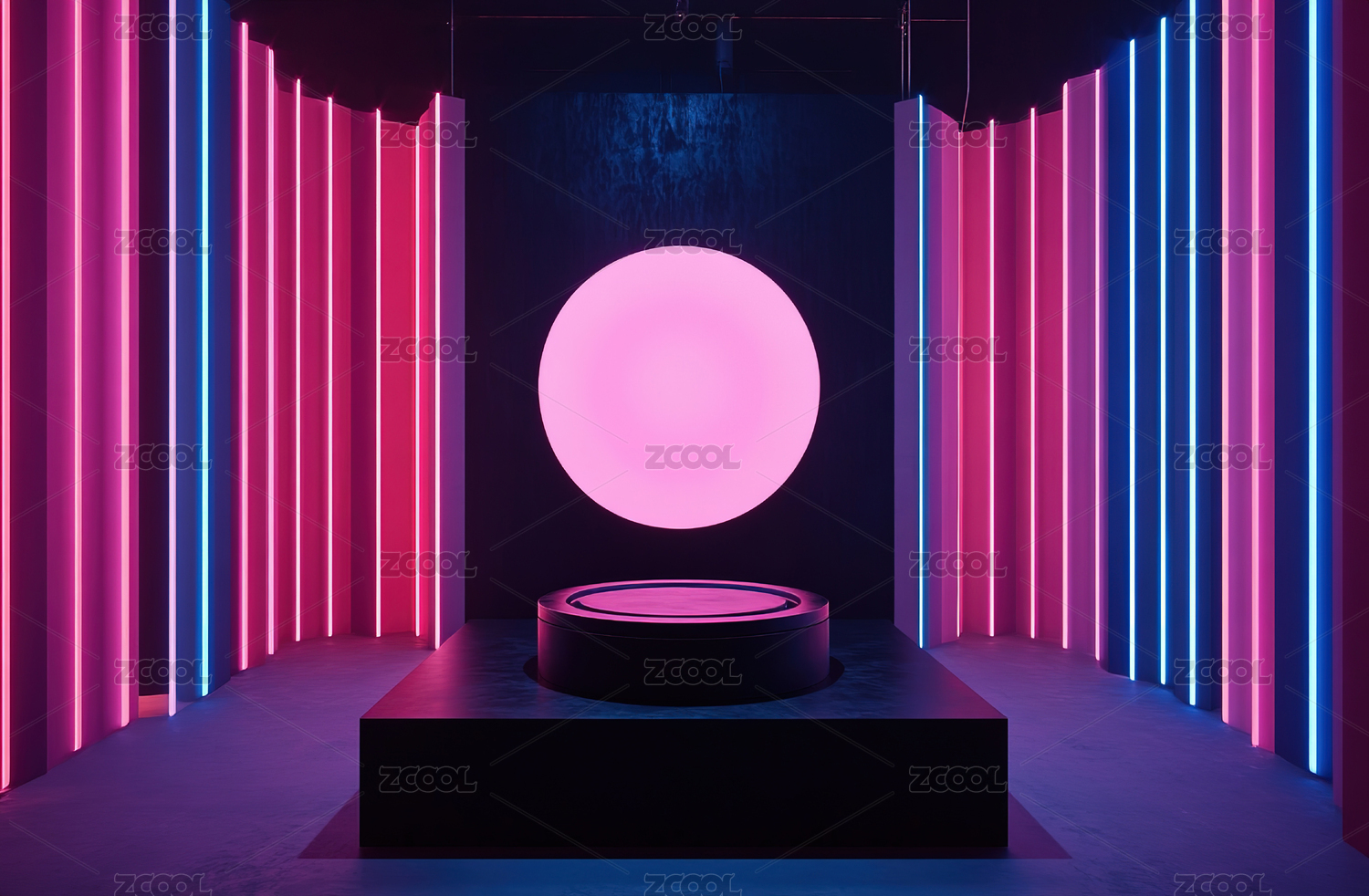蓝色霓虹灯下的圆形展台