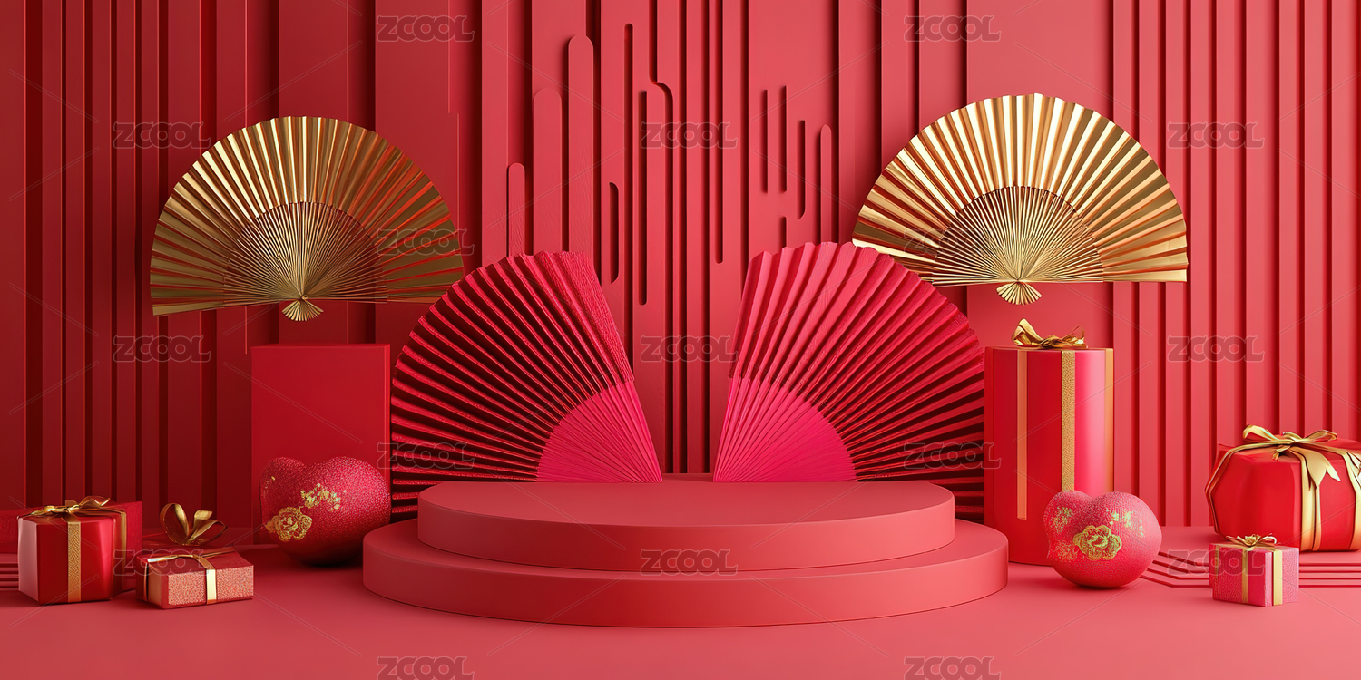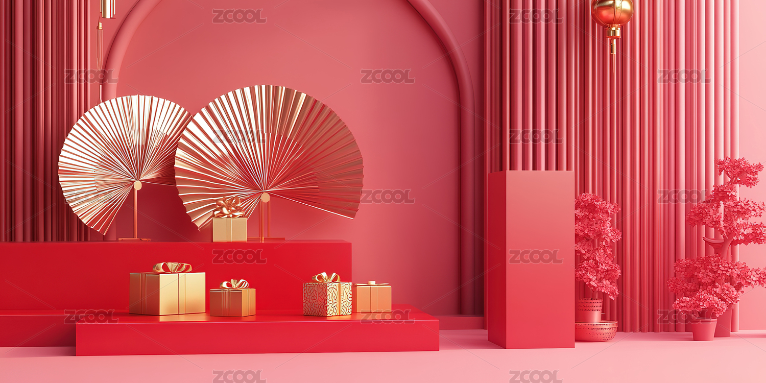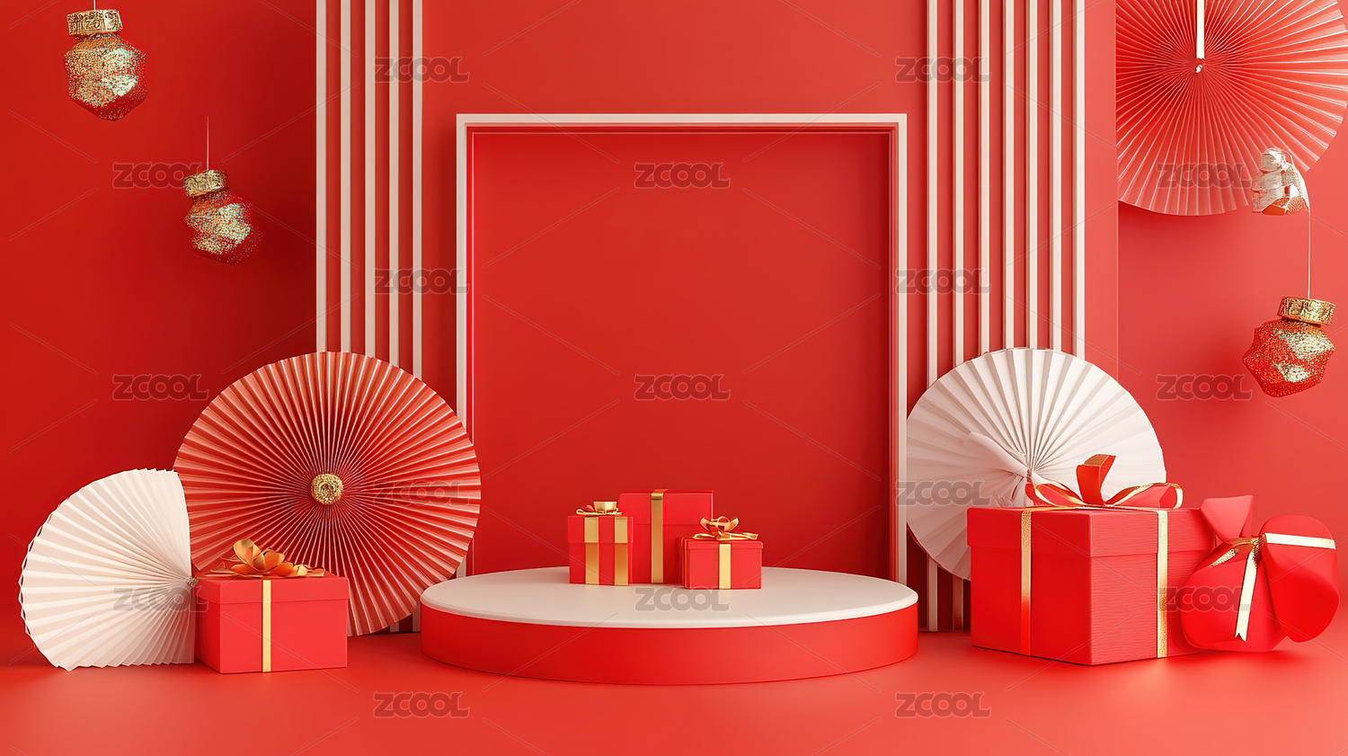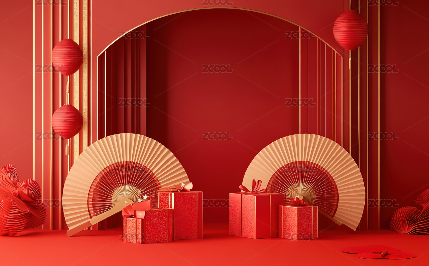 无人,中国文化,春节,三维图形,传统文化,背景,礼物,传统节日,红色,新年