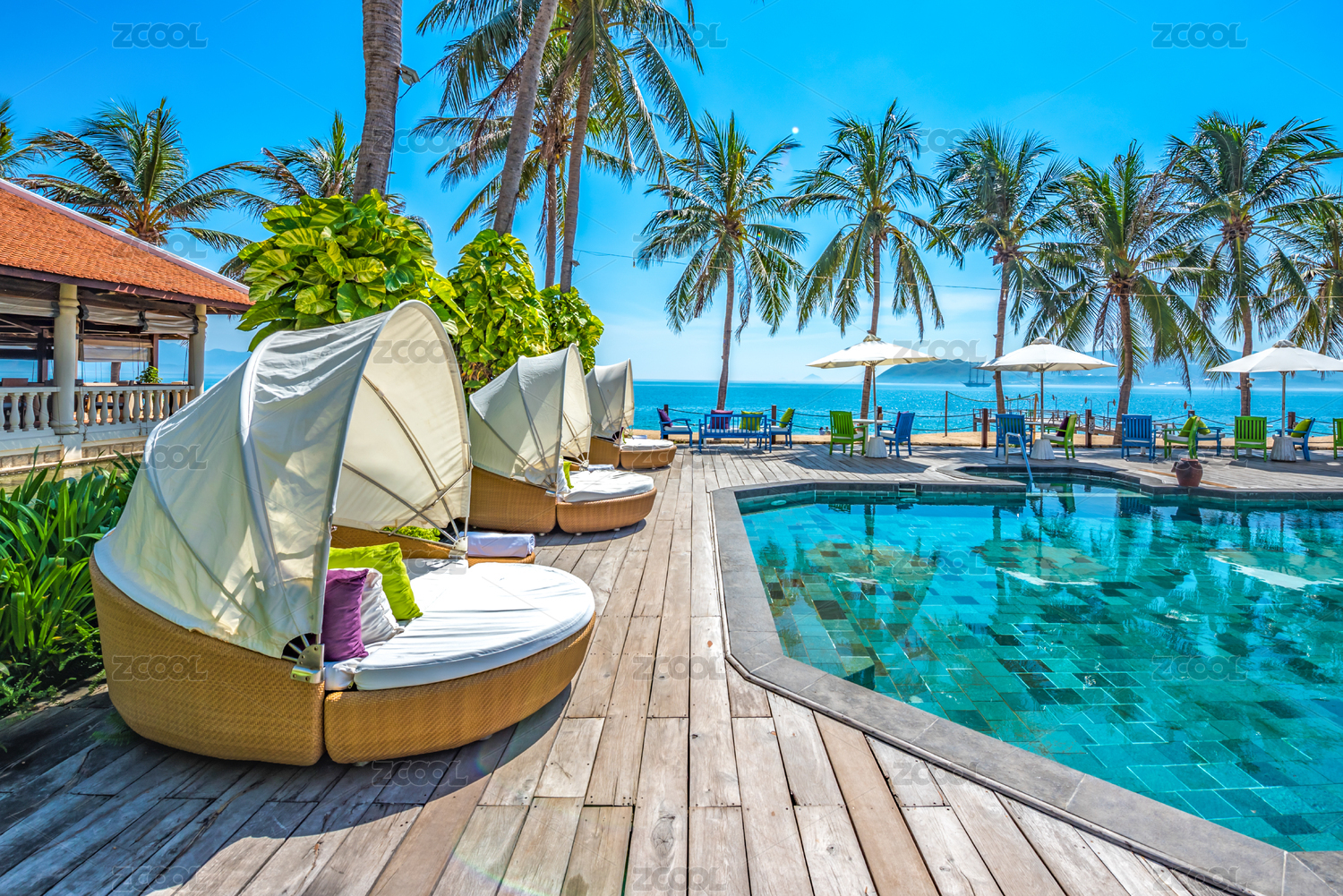 三亚酒店度假村滨海浴场户外休闲躺椅