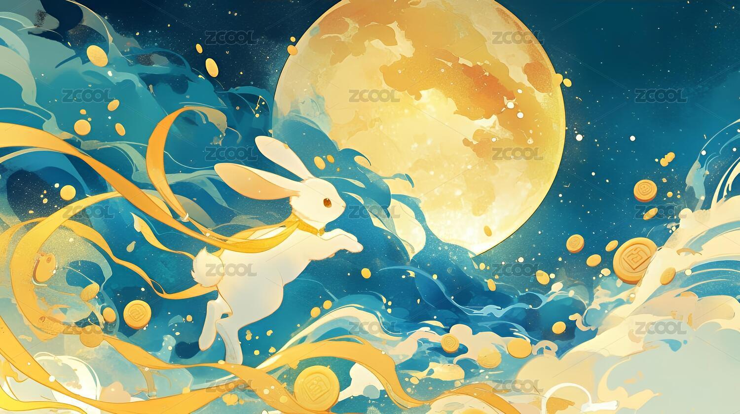 中秋,玉兔,月亮,插画,海报背景,AIGC202403
