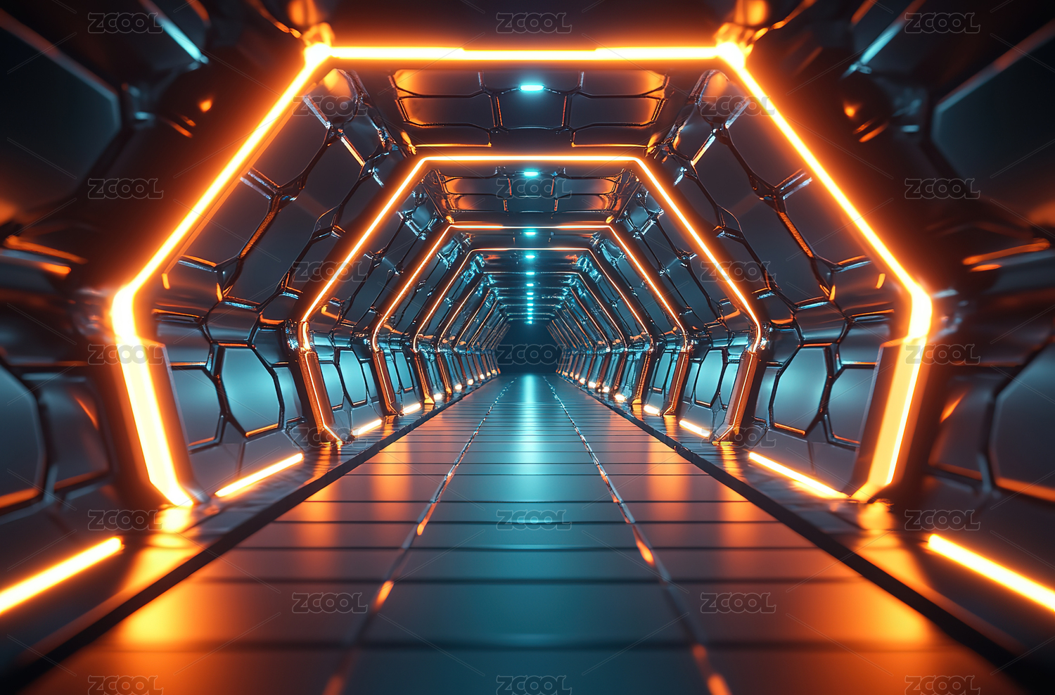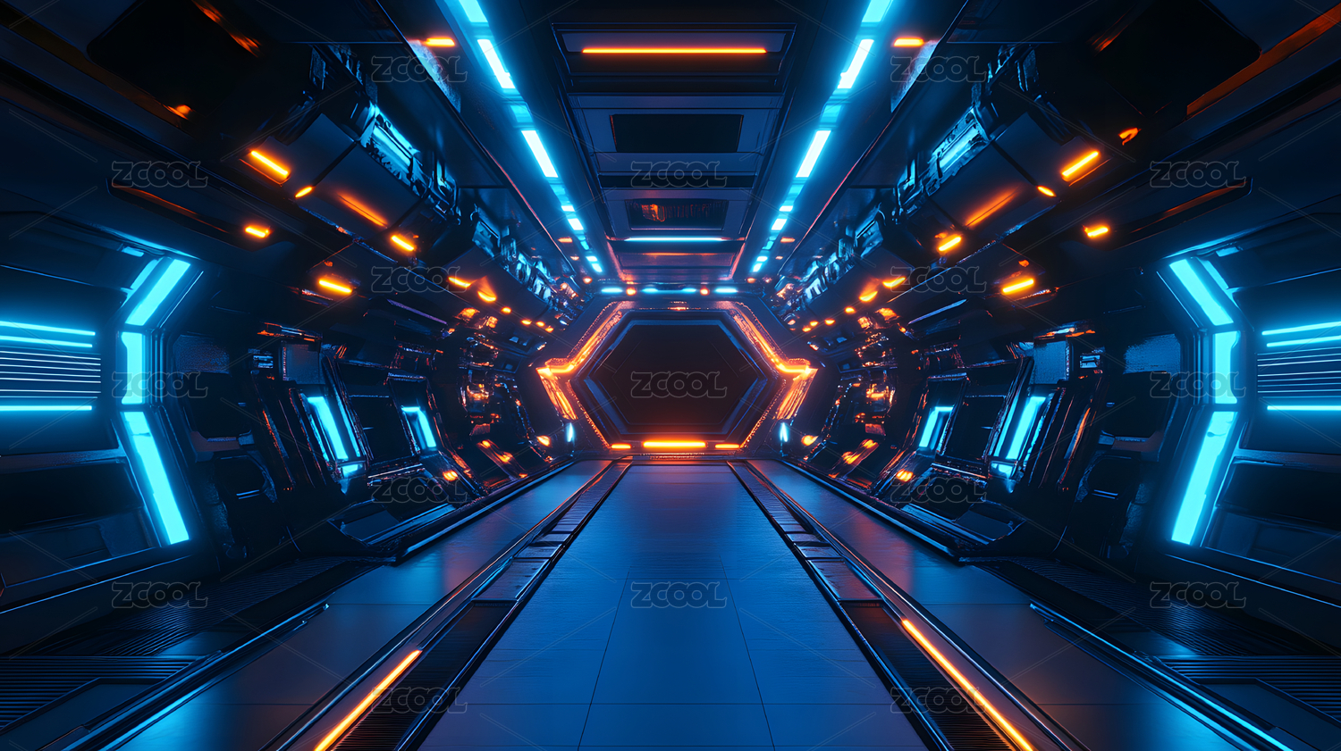 蓝色科幻走廊未来科技感通道