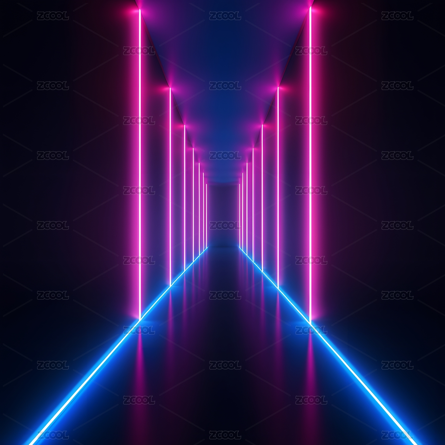 3D渲染科幻延伸几何隧道霓虹灯线概念插图